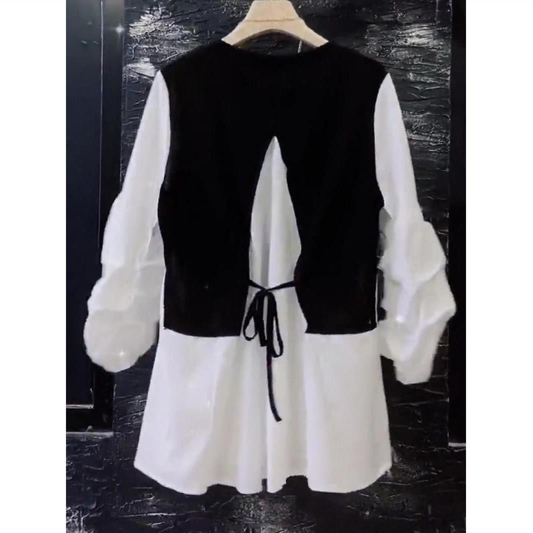 シアースリーブ ドッキングシャツ ボウタイシャツブラウス