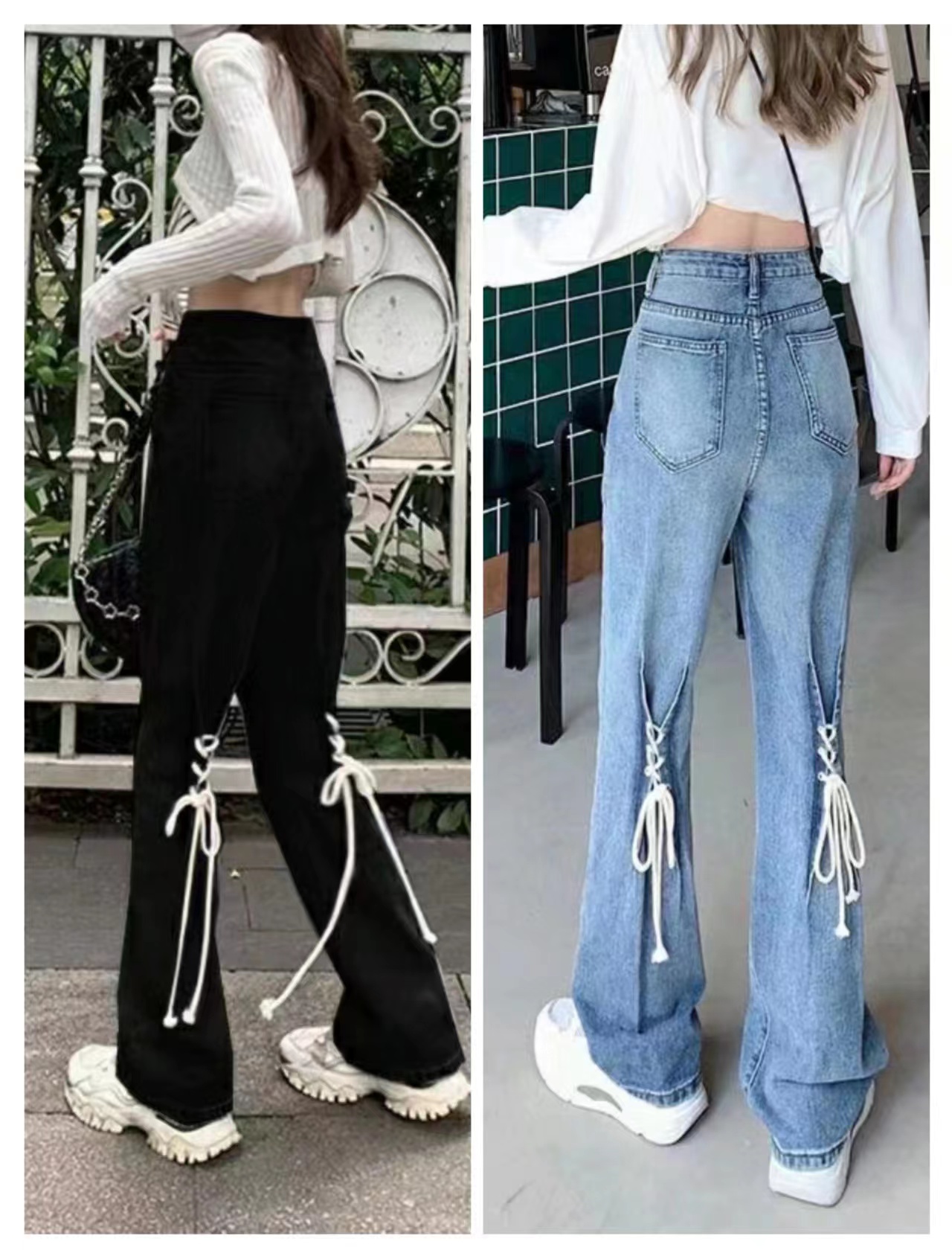 デニムパンツ ビジュー付き