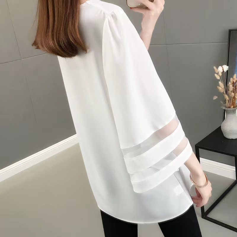 シフォンブラウス シアーブラウス ボリューム袖