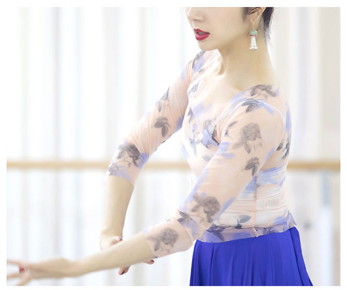 バレエ トップス 花柄 シースルー メ