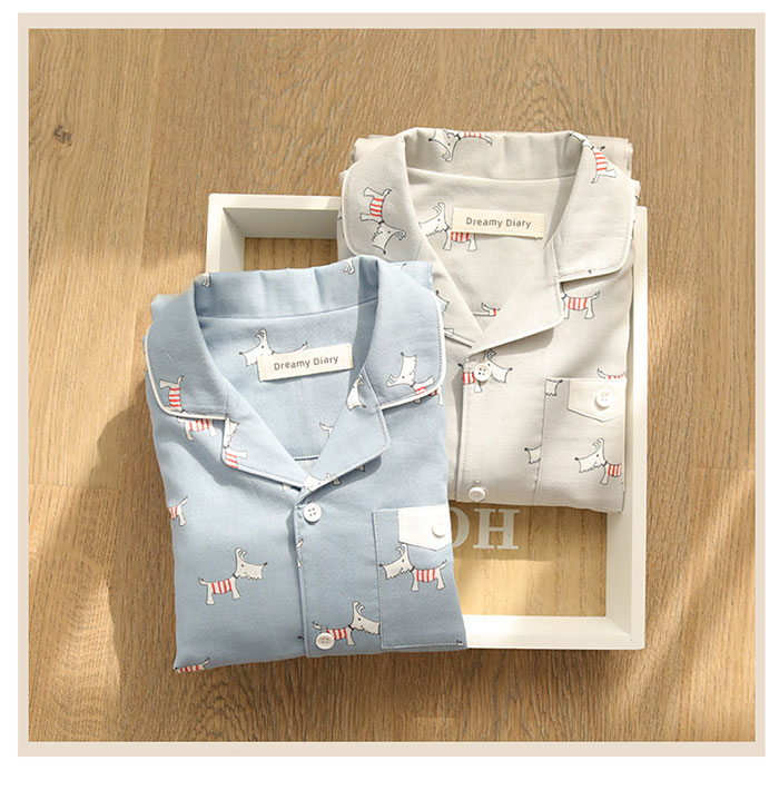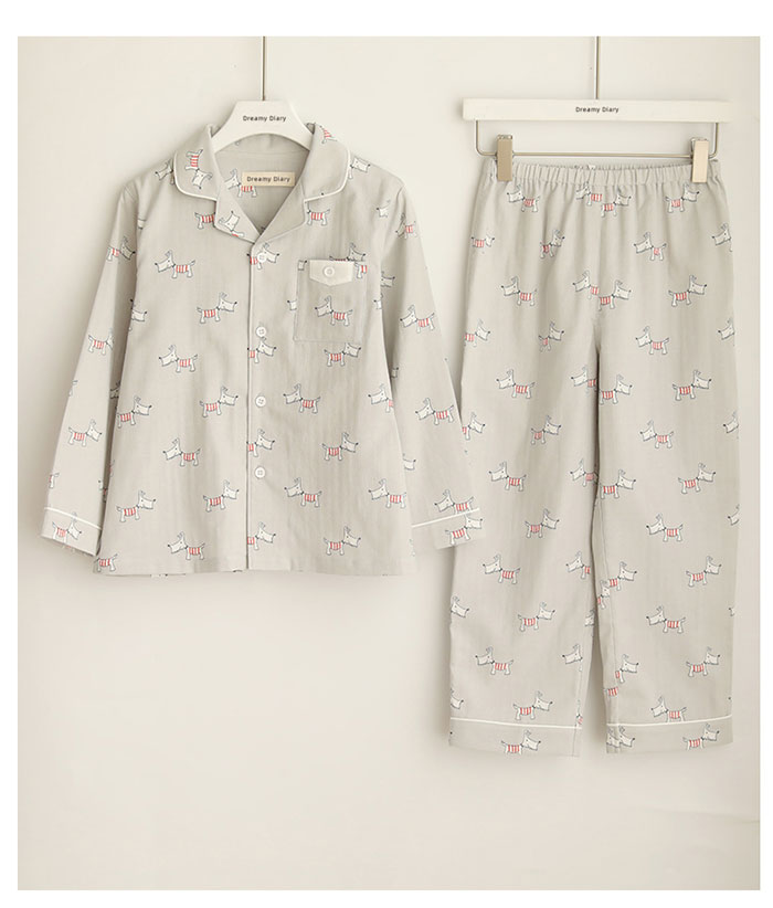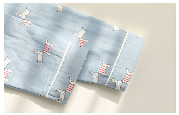 長袖前開きガーゼパジャマ 男の子 犬柄