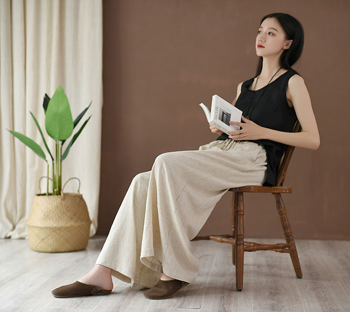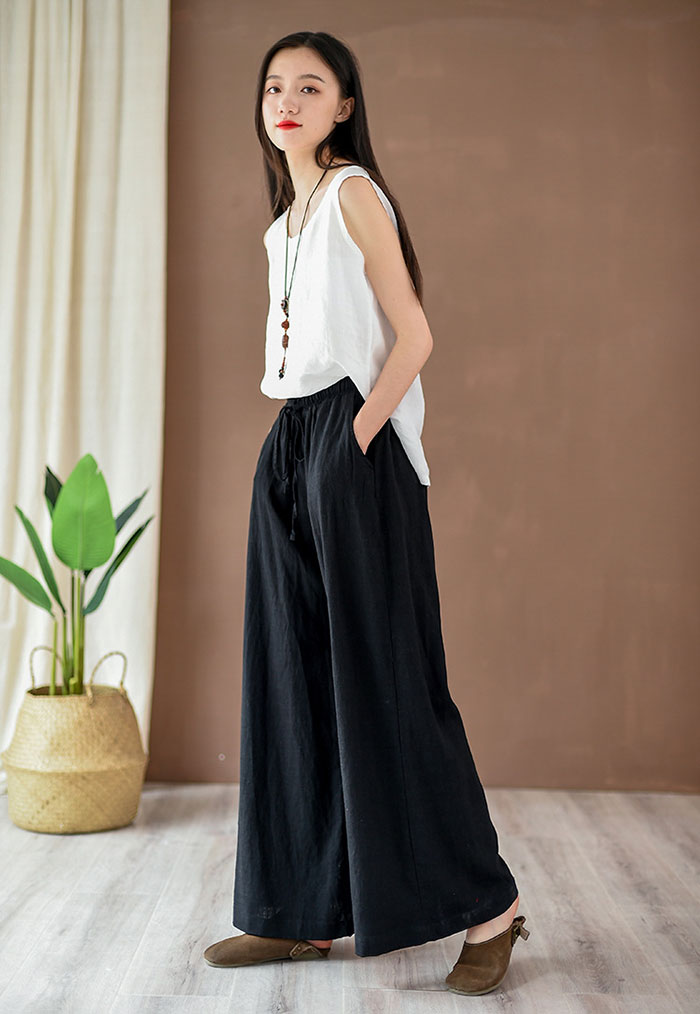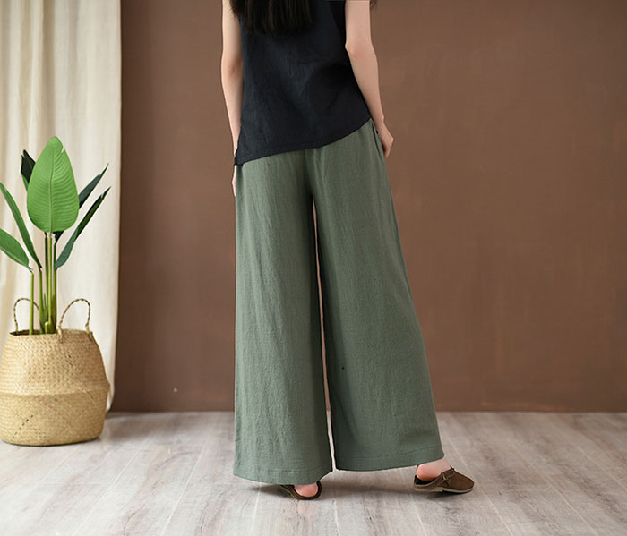 ワイドパンツ レディース リネン パン