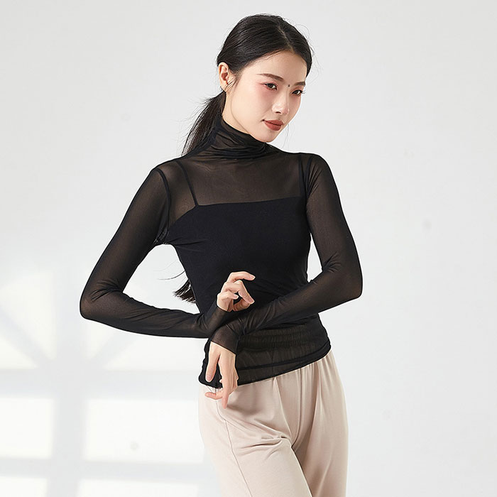 バレエ トップス 長袖 ストレッチメッ