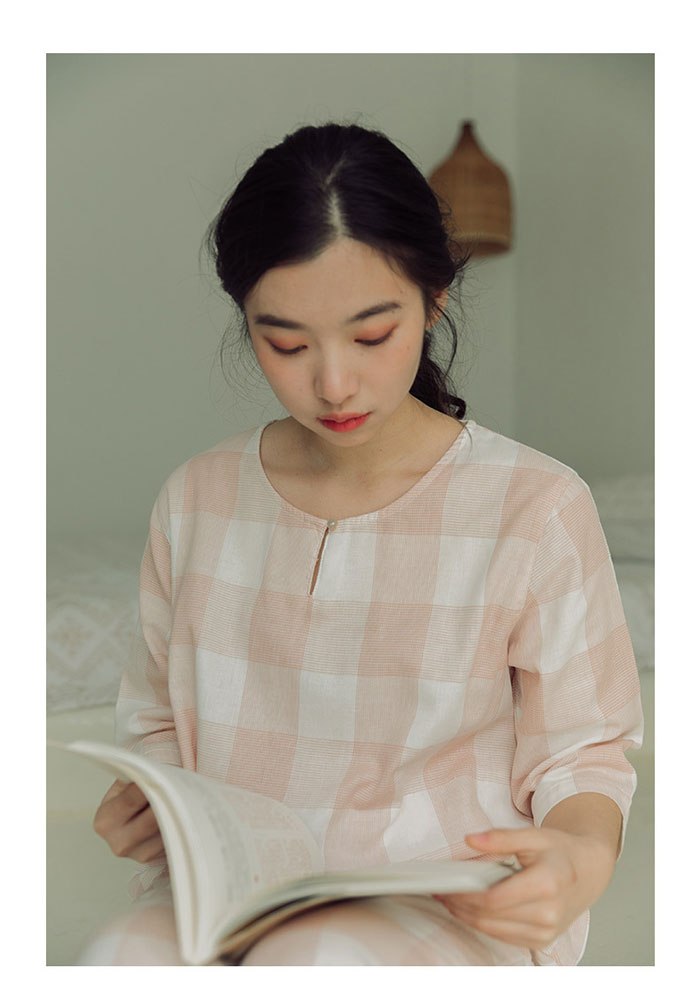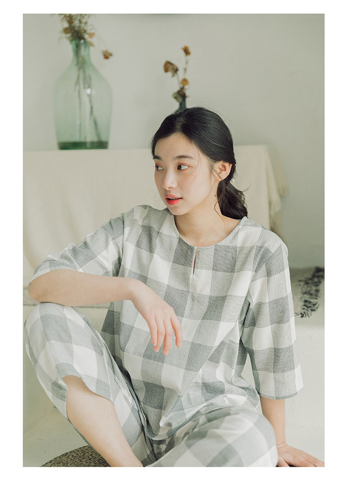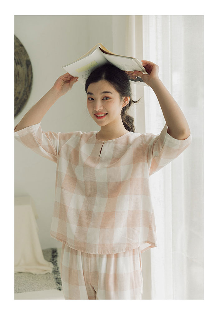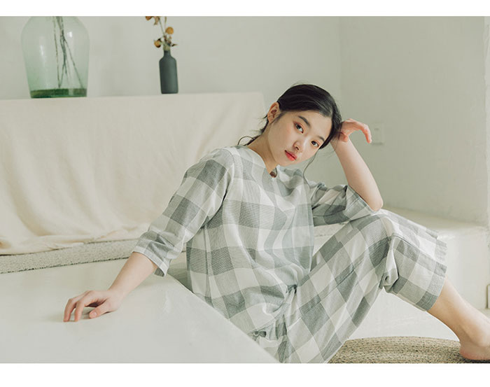 チェック柄 綿100% ガーゼパジャマ