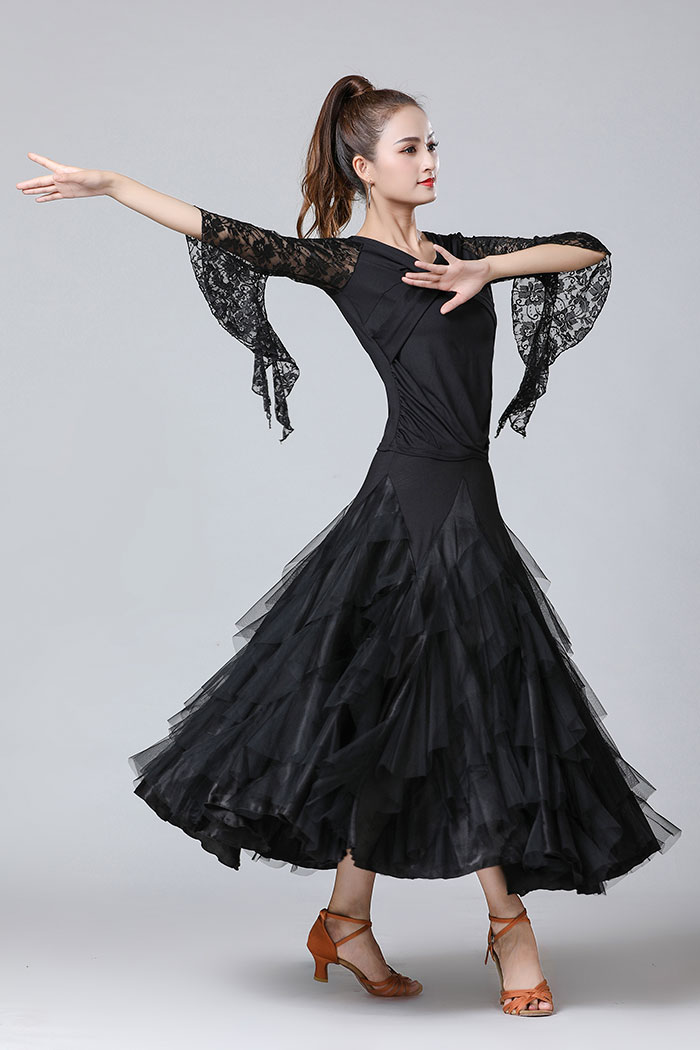 ダンス衣装 トップス 黒 花柄レース