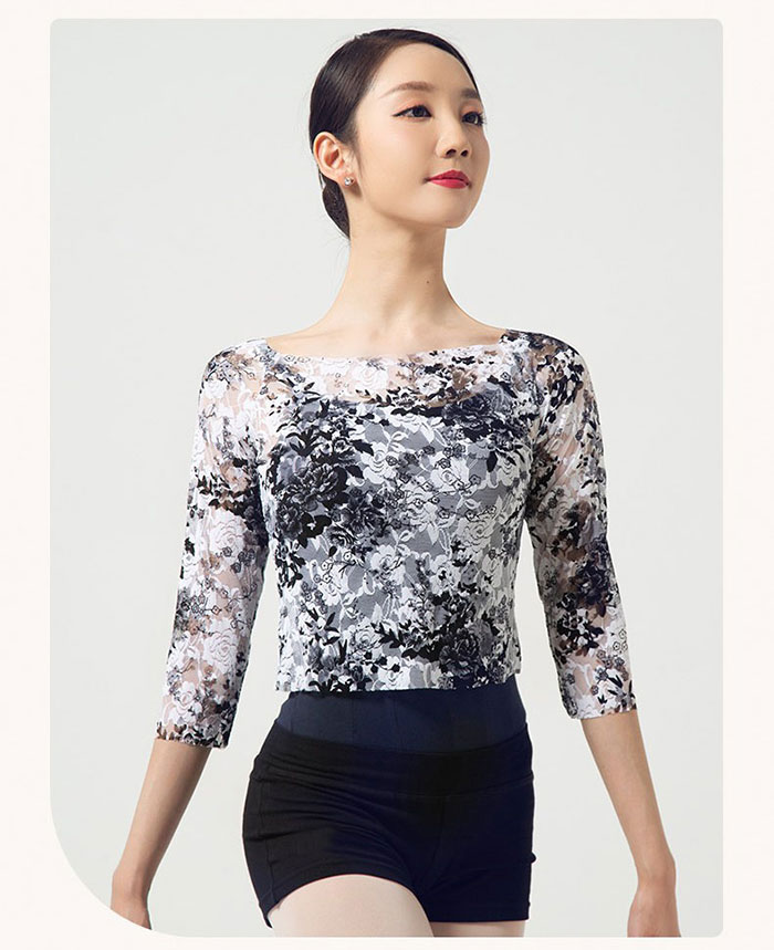 バレエ トップス 花柄 シースルー メ