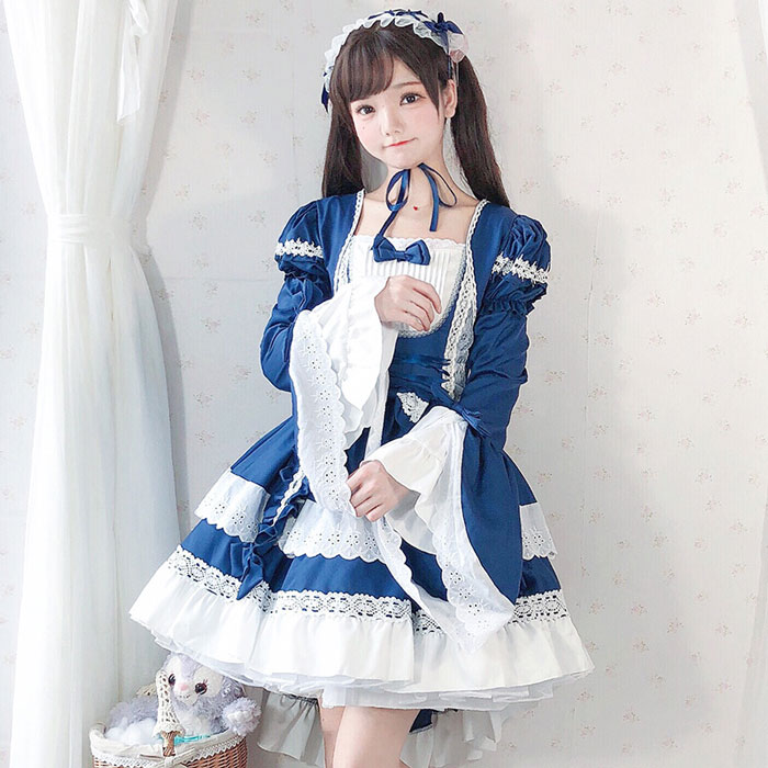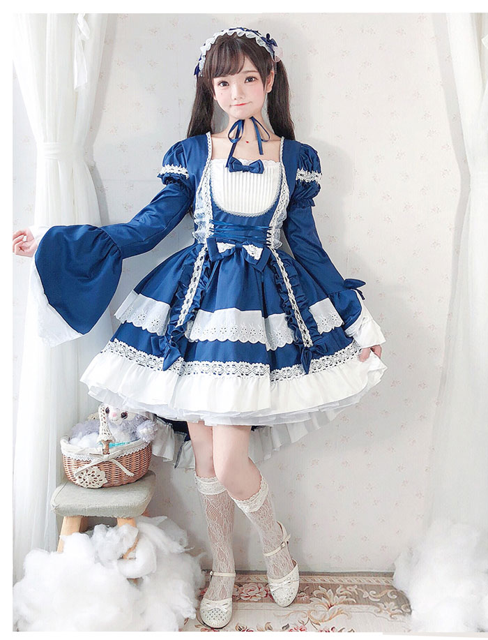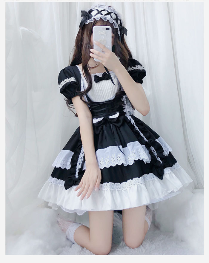 ゴスロリ 編上げ メイド風 ワンピース