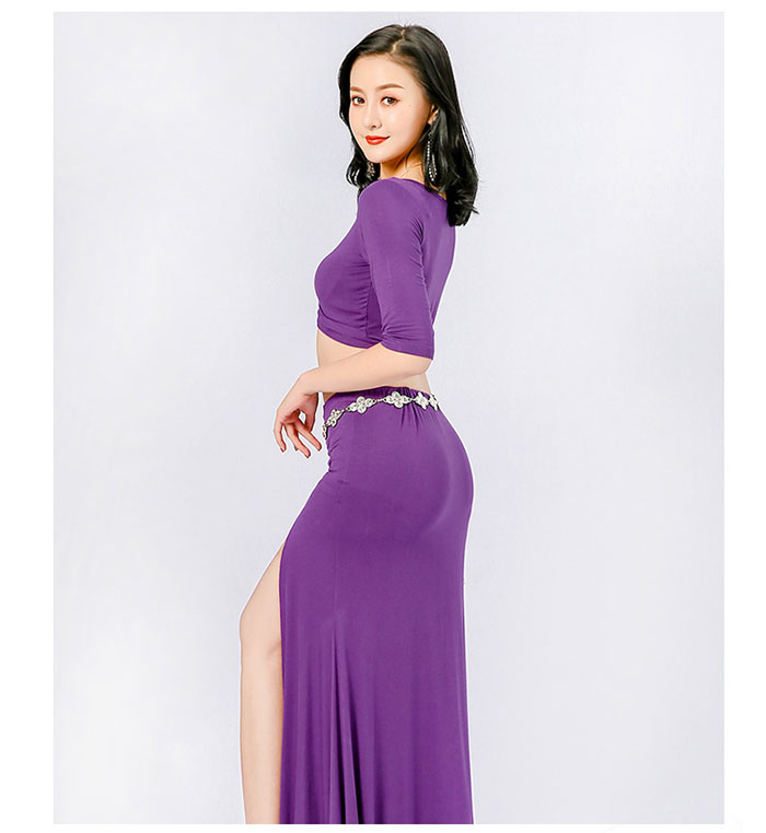 ベリーダンス 衣装 セット レッスン着 セットアップ ラメ入り チュール おしゃれ ベリーダンス衣装 ストレッチ生地 ドルマンスリーブ 半袖 トップス ショート丈 スカート 非対称のライン きれいめカ