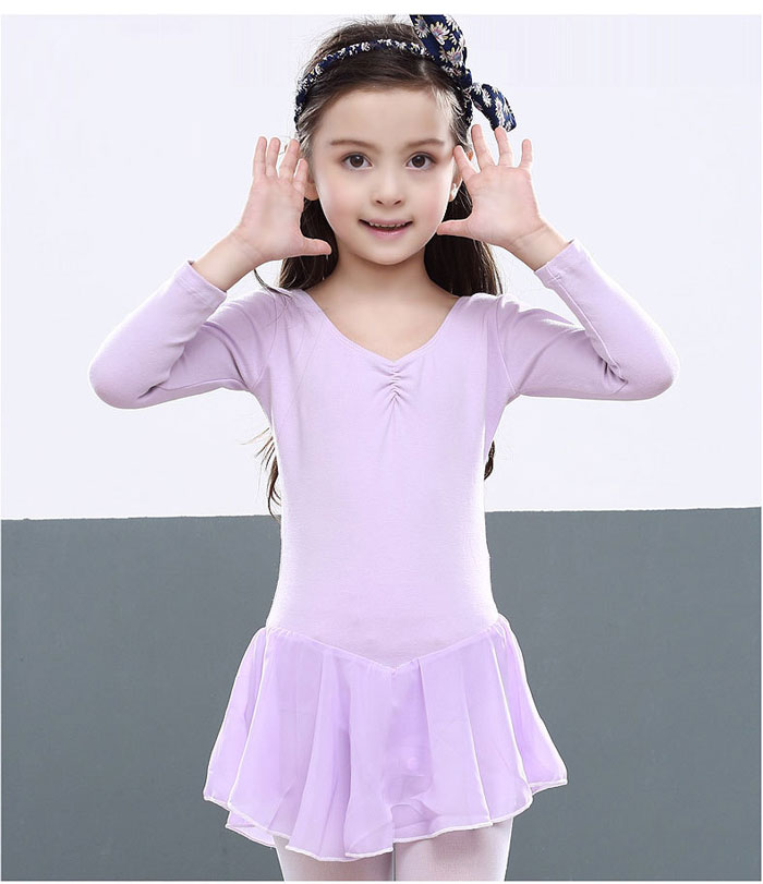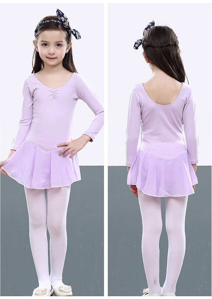 スカート付き 長袖 バレエレオタード