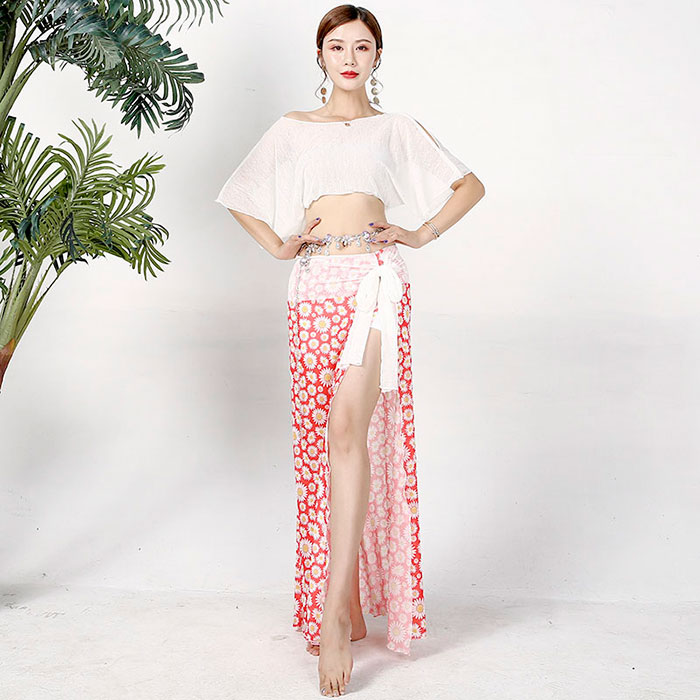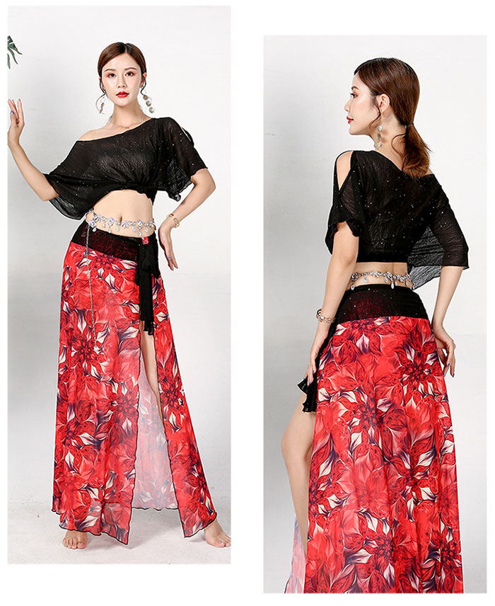 horizontal-key: 黒のトップス+赤の大花スカート 白のトップス+白の小花スカート 黒のトップス+白の小花スカート 白のトップス+赤の大花スカート