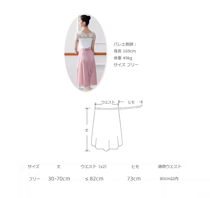 バレエ 巻きスカート膝丈 ミディ丈 大