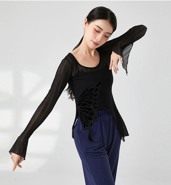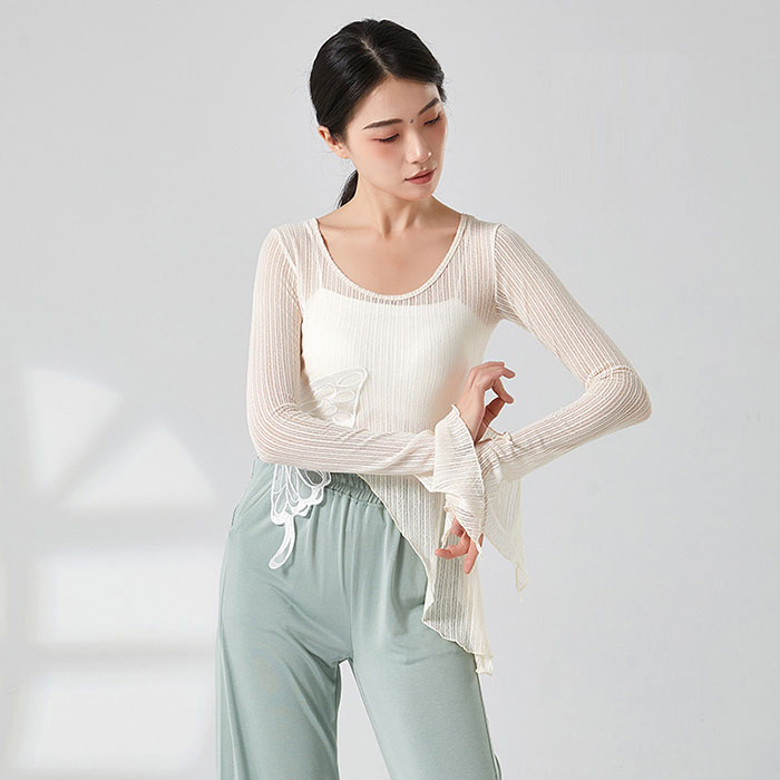 ダンストップス 長袖 透け感 トップス