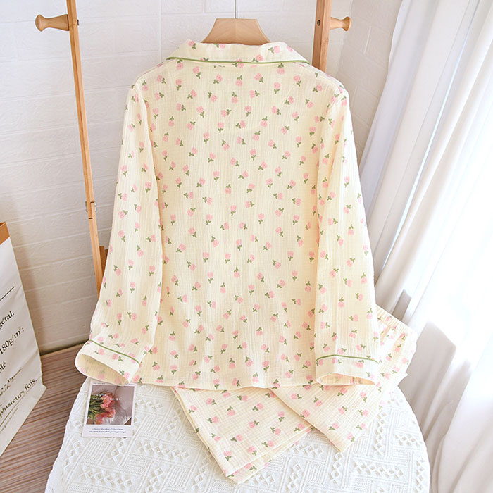 ダブル ガーゼ パジャマ 綿100% 前開き二重 可愛い 大人用インナー 下着 ナイトウェア レディース ナイトウェア ルームウェア パジャマ