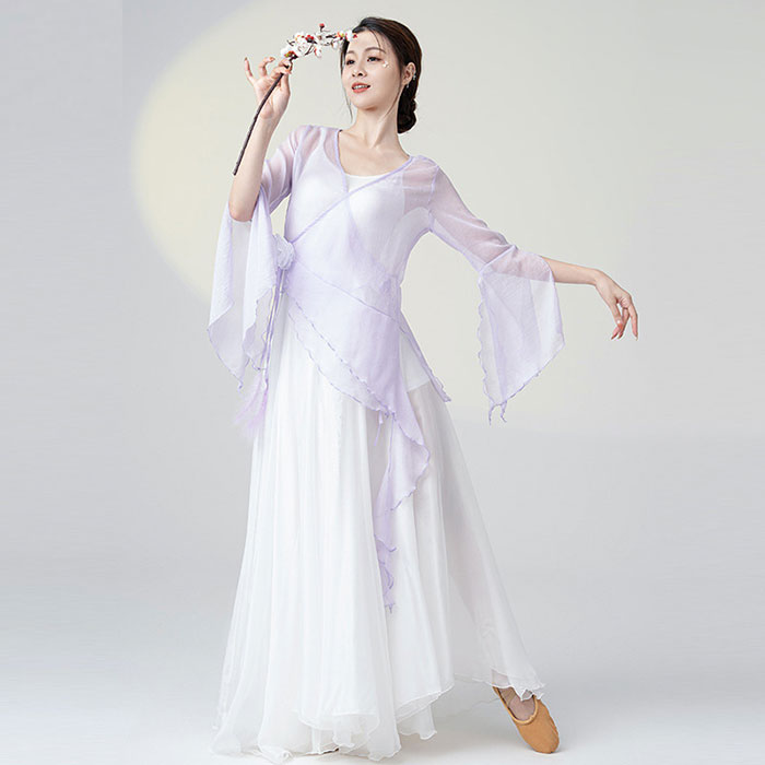 ダンス衣装 長袖 トップス ロング丈 シフォン 巻きスカート フレアスカート 広がるスカート ふんわり シフォン スカート ダンス レッスン着 レディース 大人 ダンス 発表会 ステージ 舞台 衣装