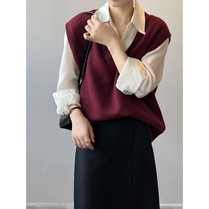 Vネックベスト トップス レディース