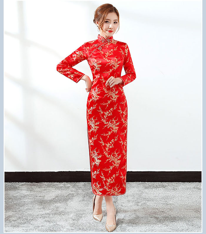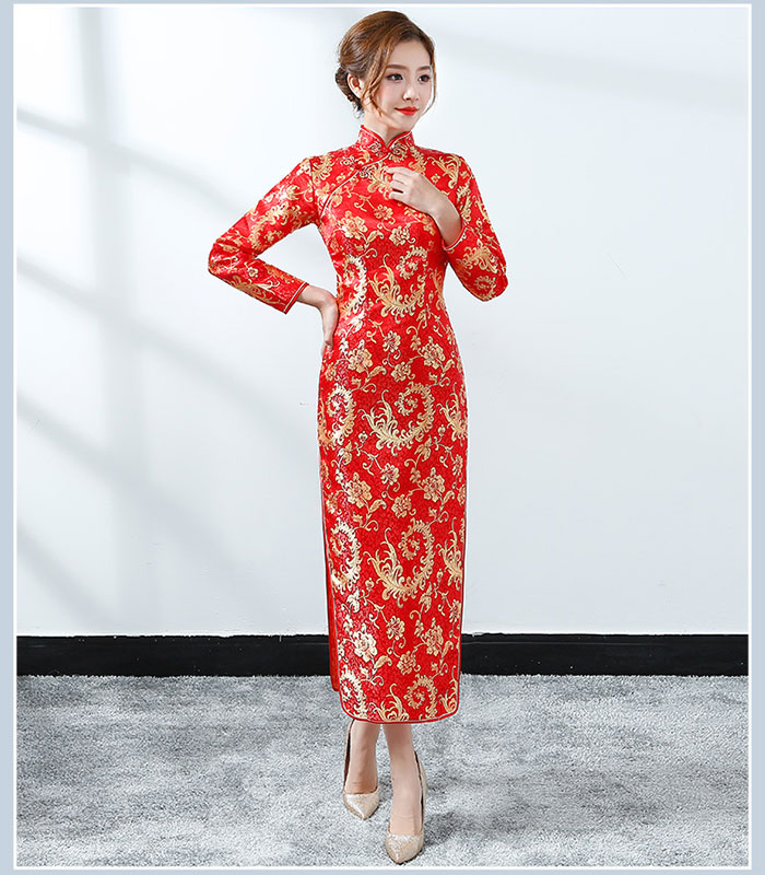 チャイナドレス ロング丈 半袖 長袖