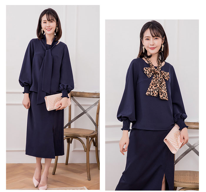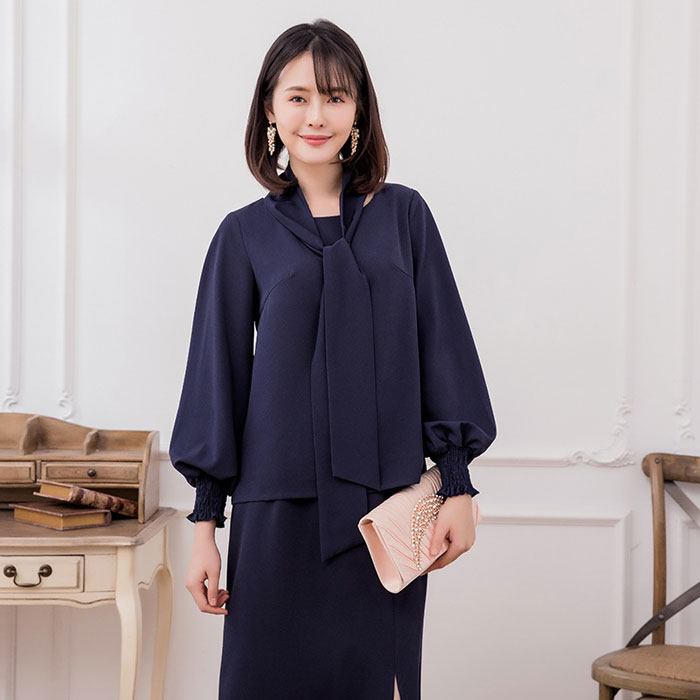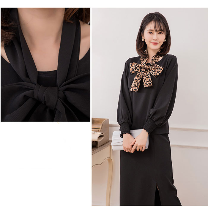 シアースリーブ ドッキングシャツ ボウタイシャツブラウス