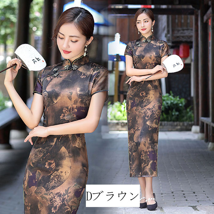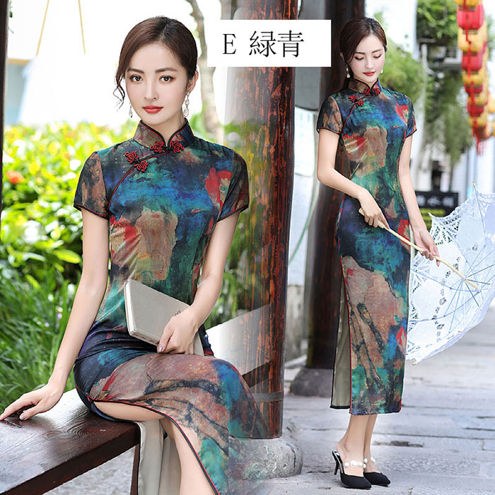 チャイナドレス ロング丈 半袖 パーテ