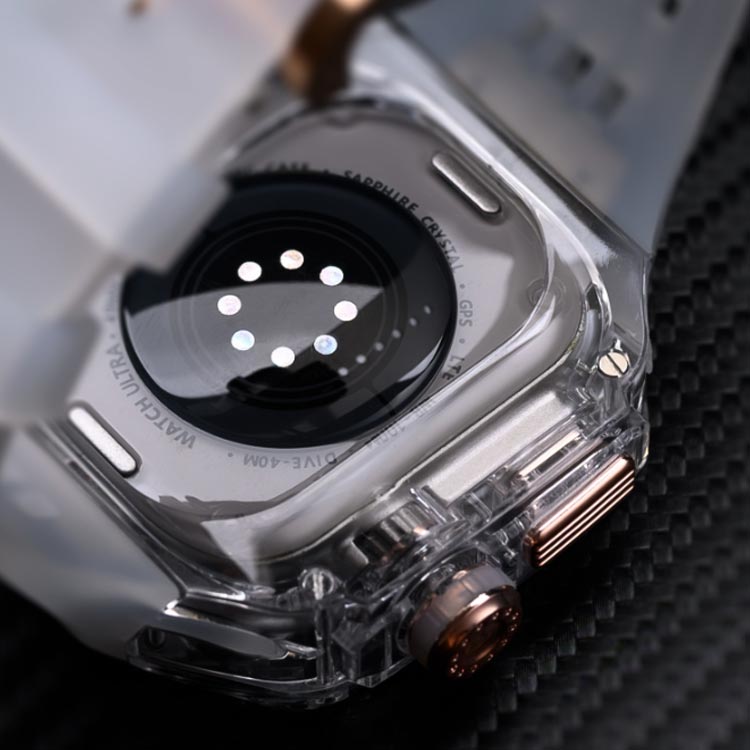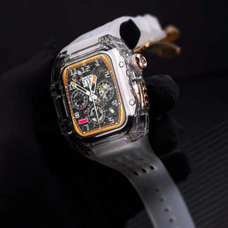 半透明のアップルウォッチのカバーも付いているのでオシャレのコーデが楽しめます。