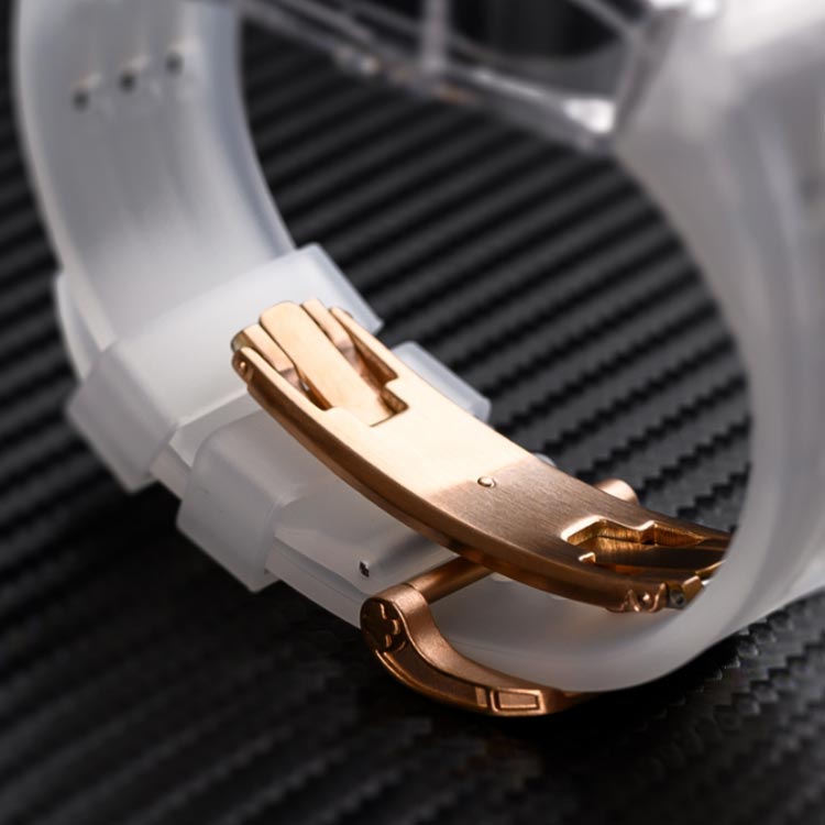 ベルトは水に強いシリコン素材を使用。濡れたら乾いた布でさっと拭くだけ。汚れても水拭きできるので清潔感が保てます。