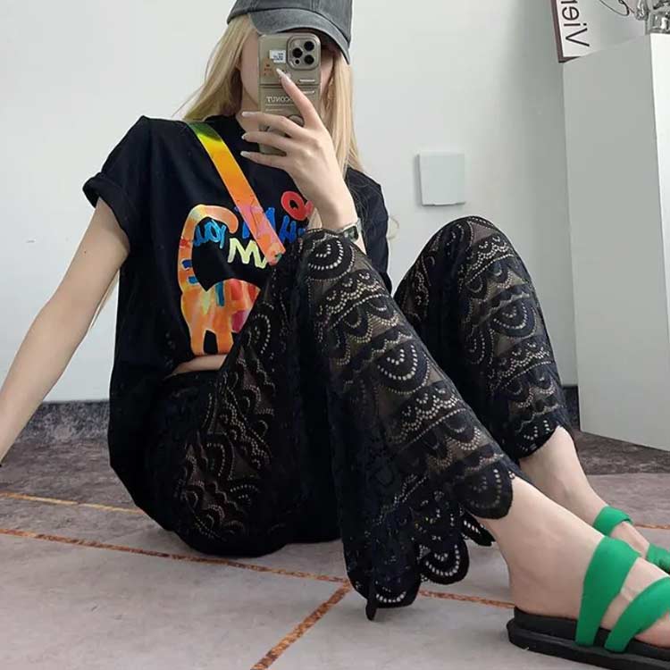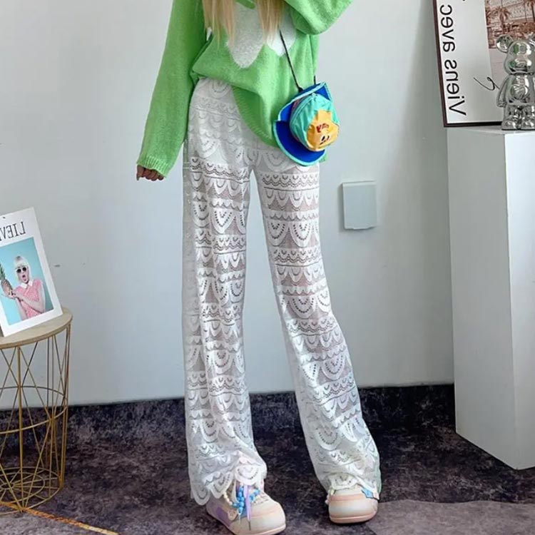 夏 ワイドパンツ 総レース レースパン