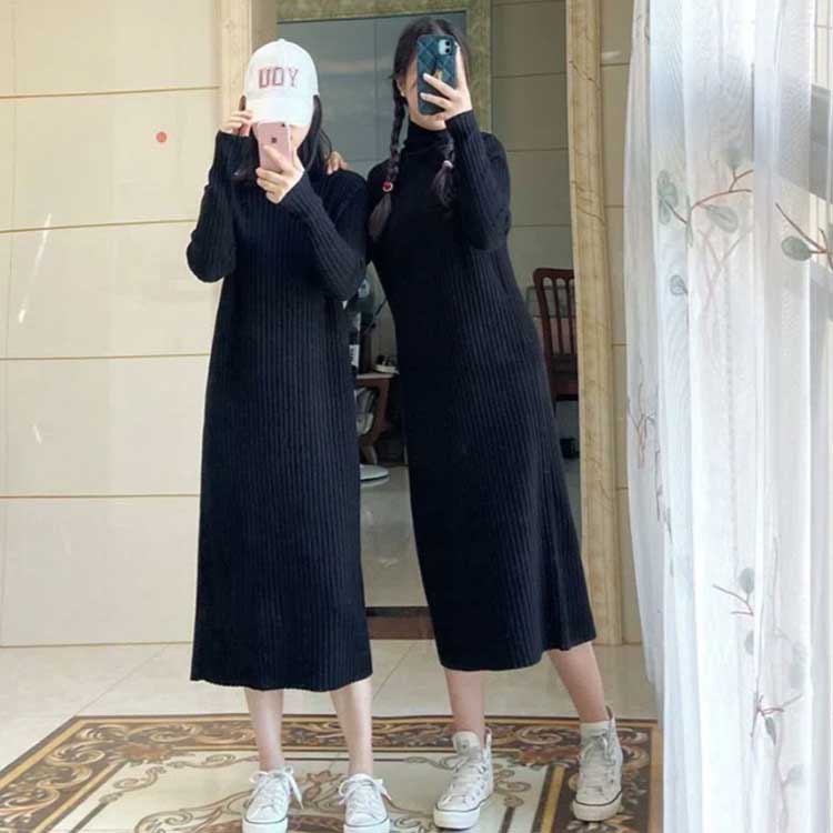 ワンピース 無地 ニットワンピース 長