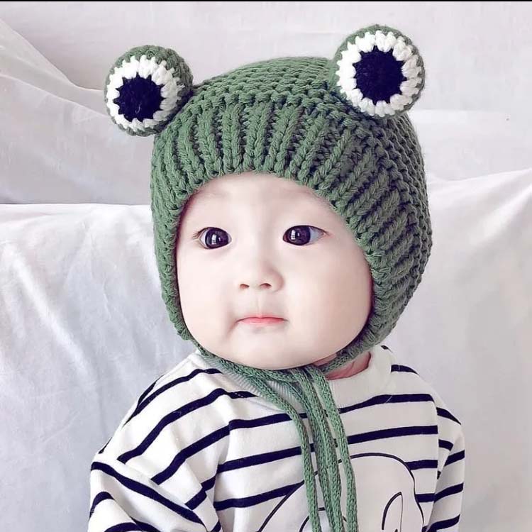女の子 スキー カエル ニット帽子 ニ