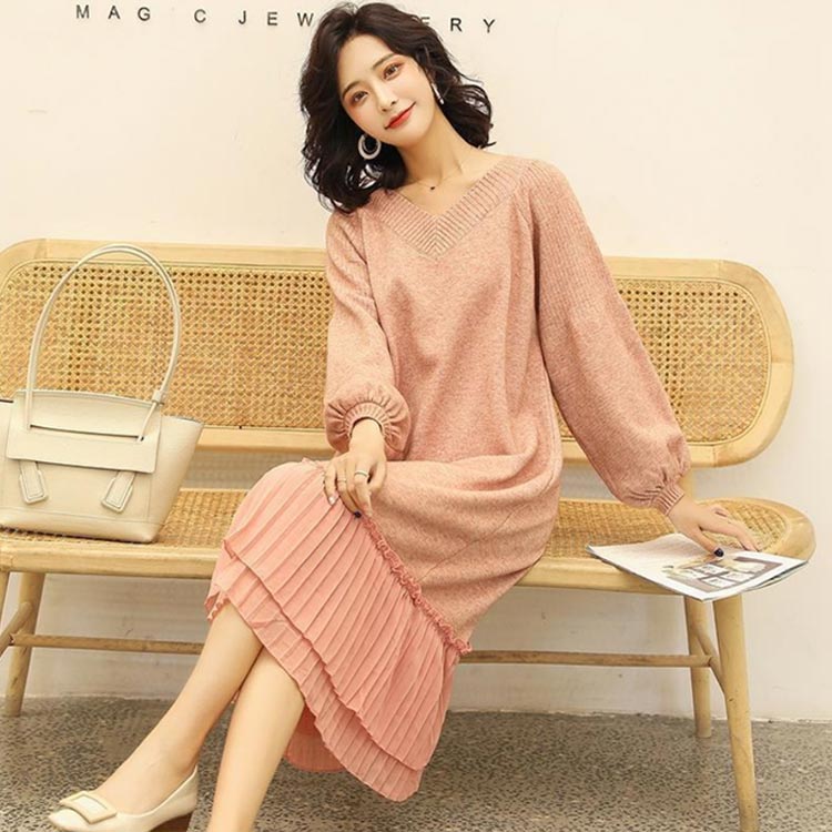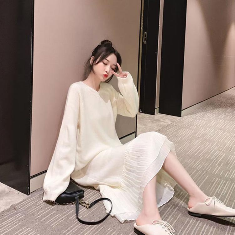 ニットワンピ 美シルエットプリーツワン
