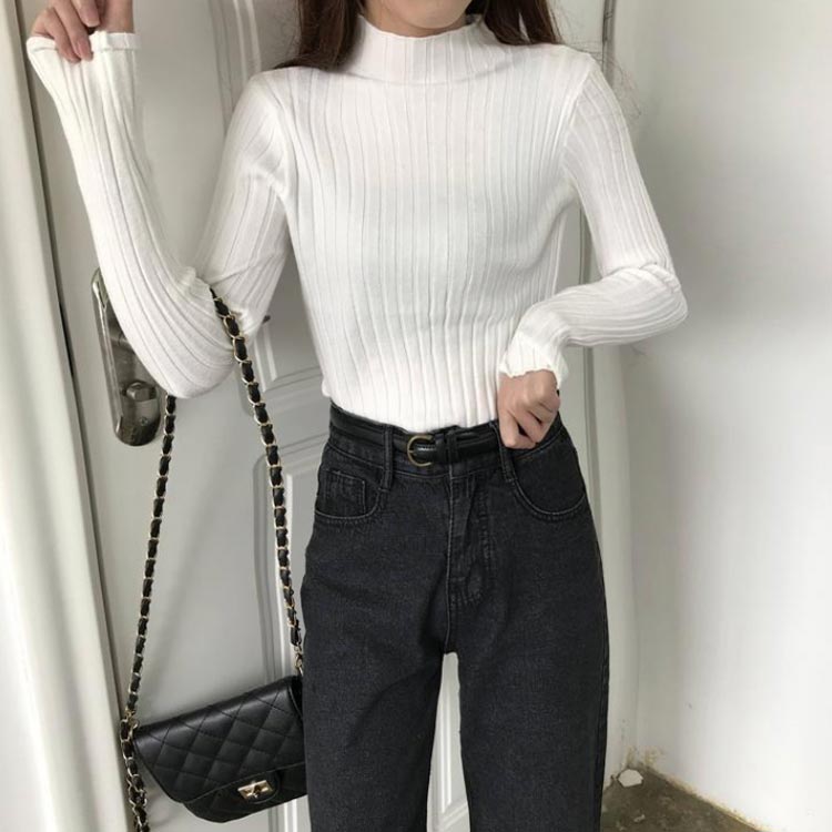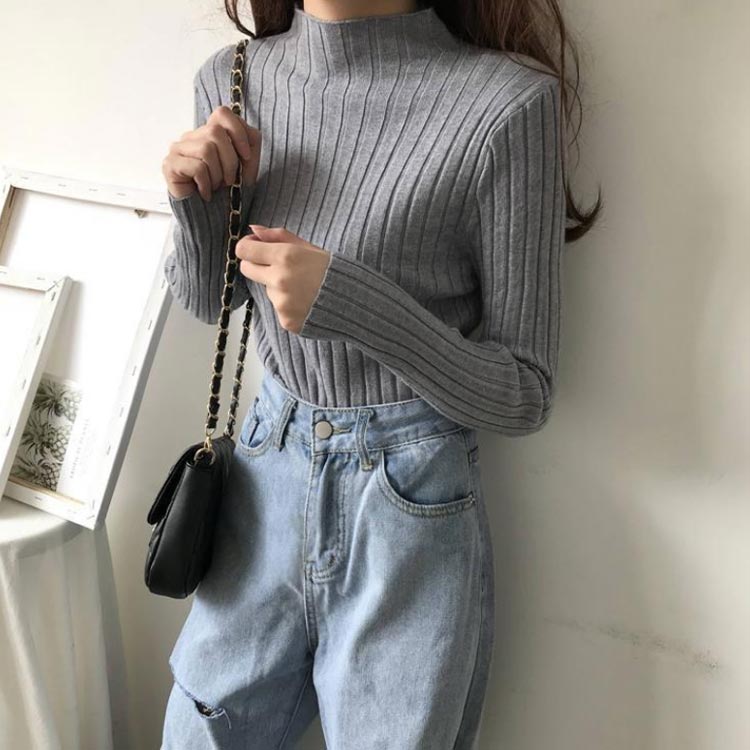 プルオーバー ニットトップス リブニッ
