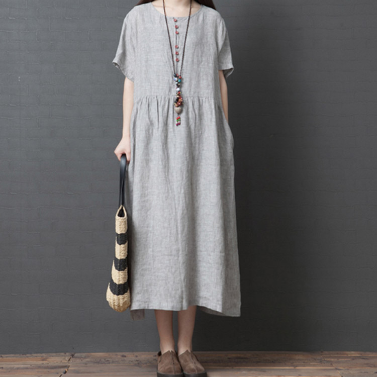 綿麻 ワンピース ミモレ丈 リネン ワ