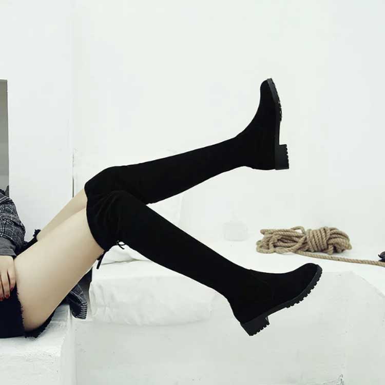 ニーハイブーツ リボン 甲高 美脚 ス