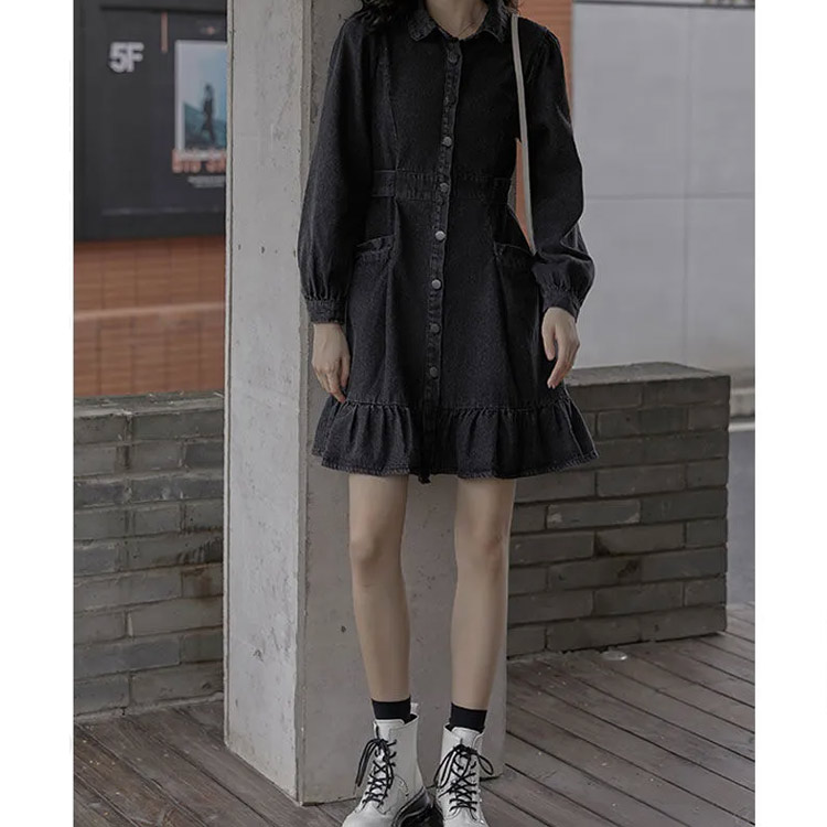 タイト レディース 長袖 デニム タイ