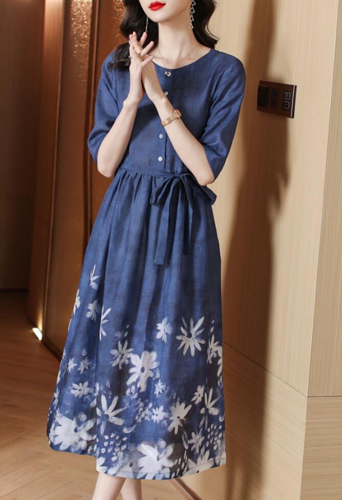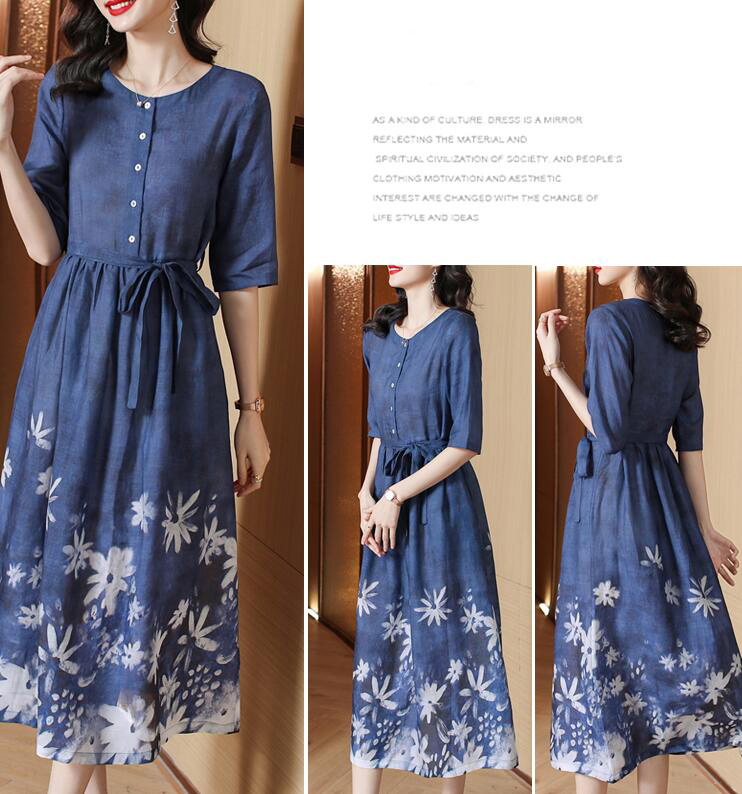 ワンピースロングワンピース花柄リネン綿