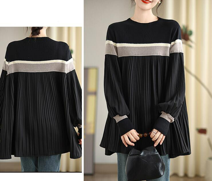 ニットチュニック プリーツニットセータ