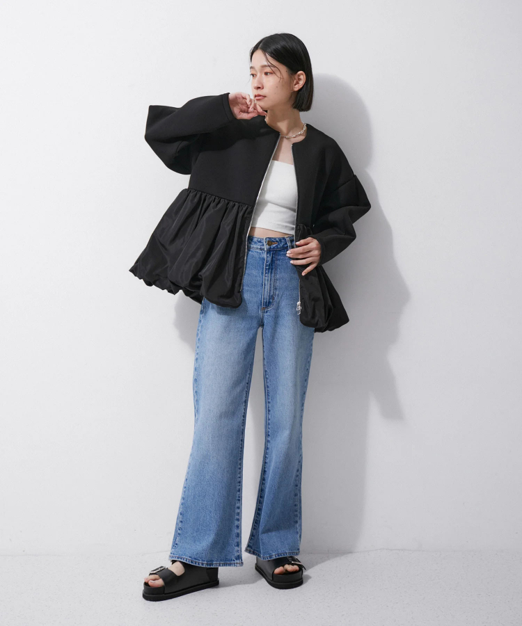 シアースリーブ ドッキングシャツ ボウタイシャツブラウス