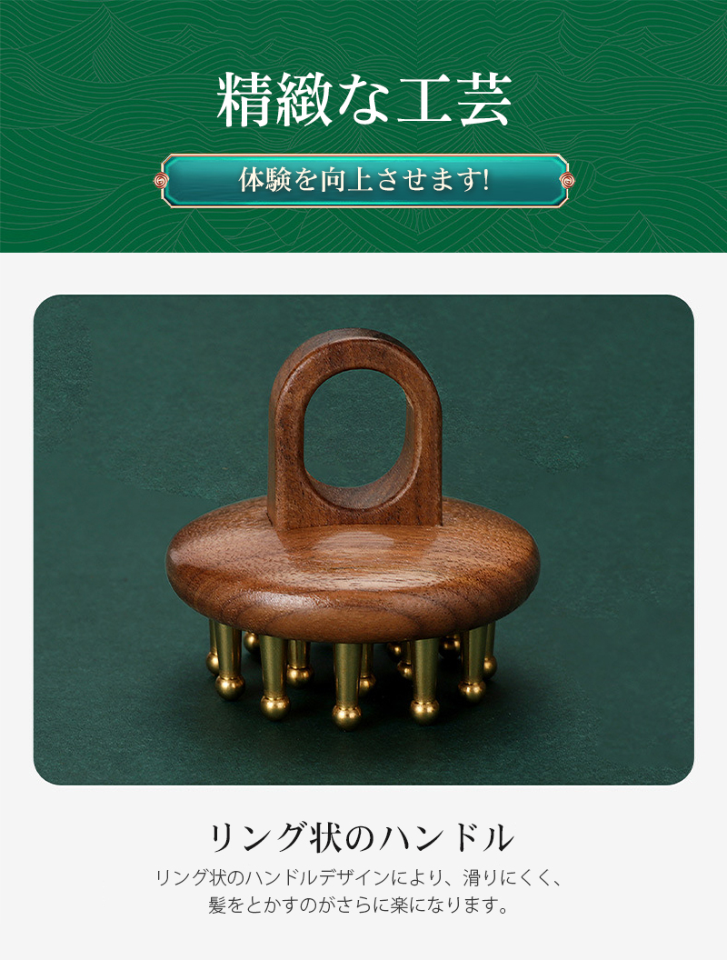 頭皮マッサージ ブラシ 黄銅 真鍮 ヘ