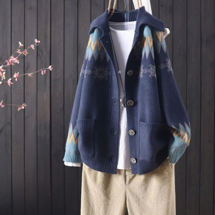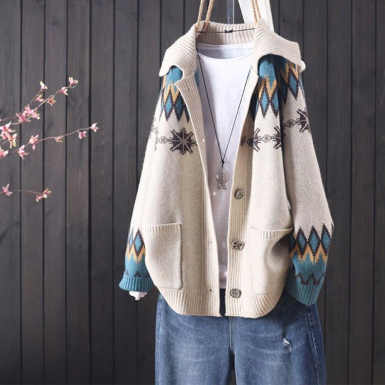 襟付き ロングカーディガン レディース