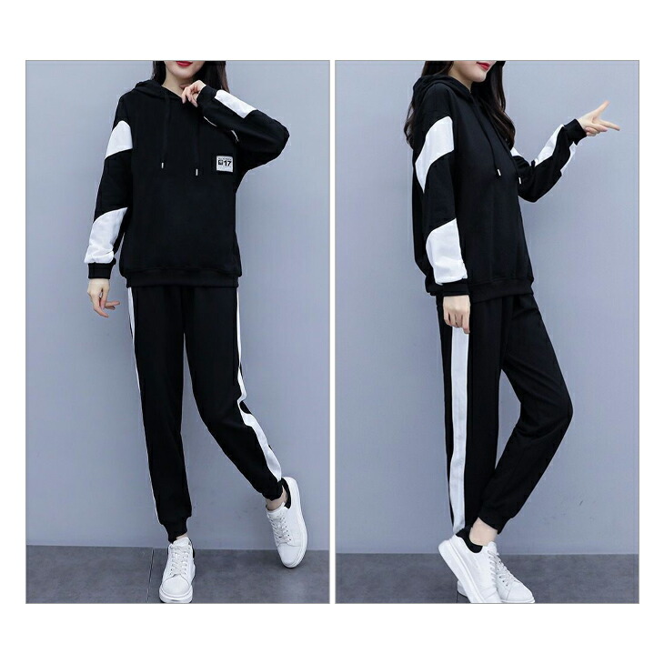 ジャージ セットアップ 上下セット レディース 長袖 長ズボン フード付き ナイトウェア 薄手 スポーツウェア ダンス ダンスウェア ランニング
