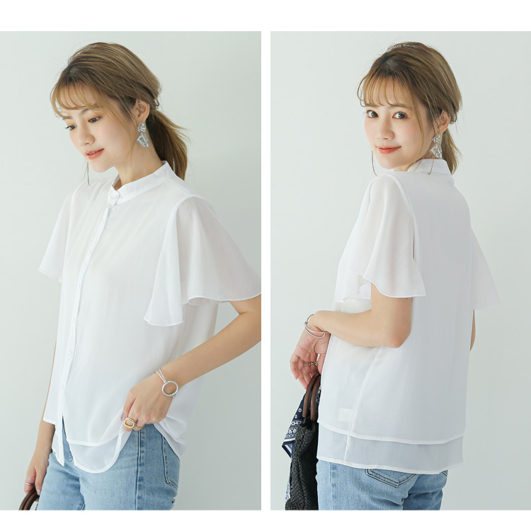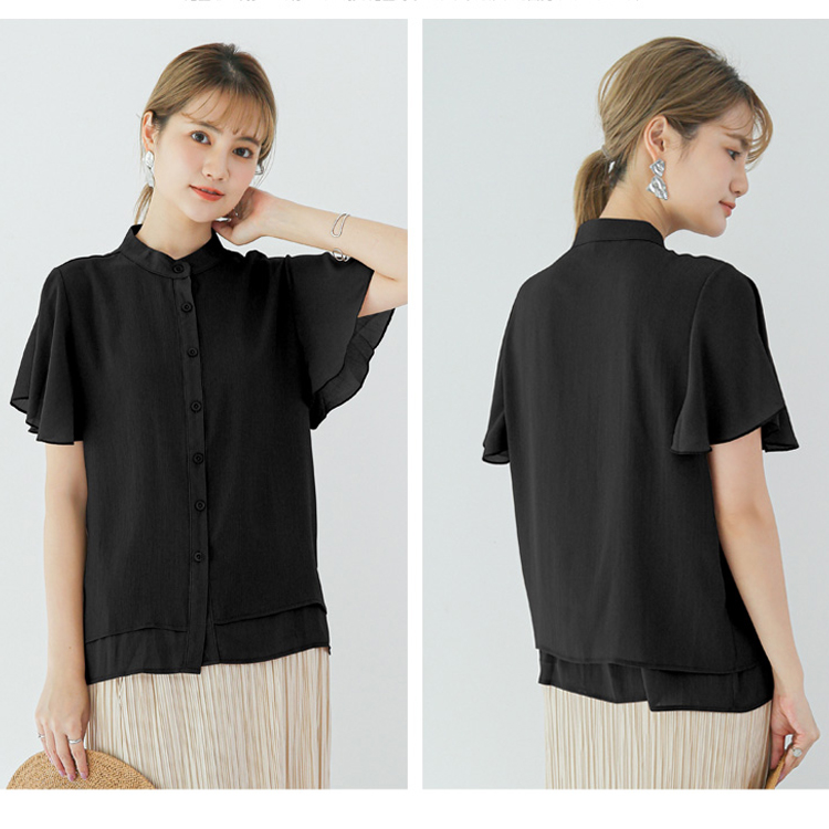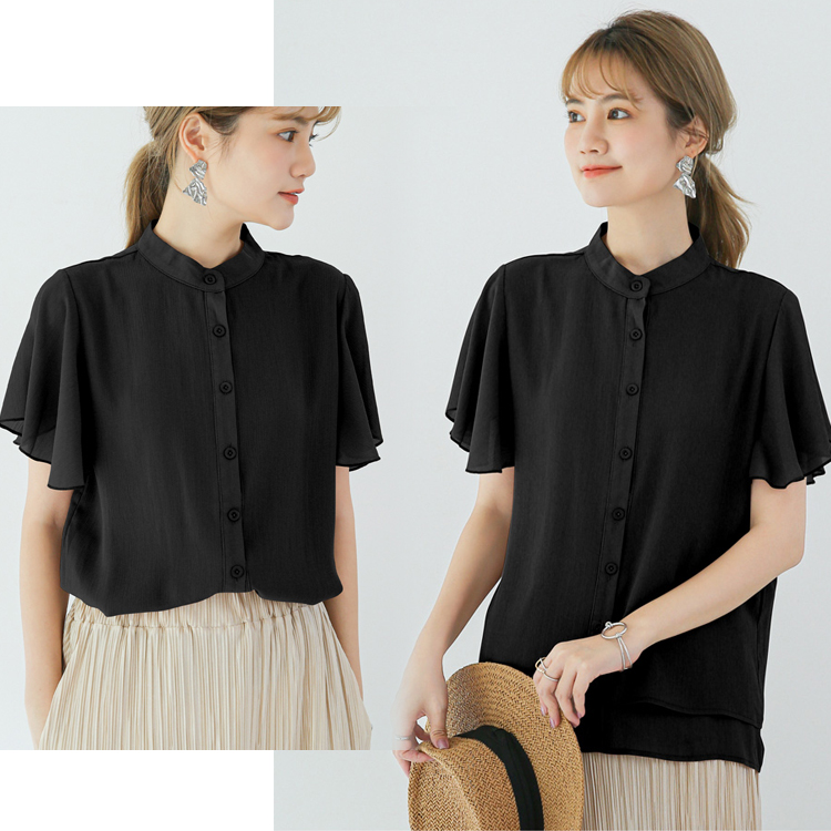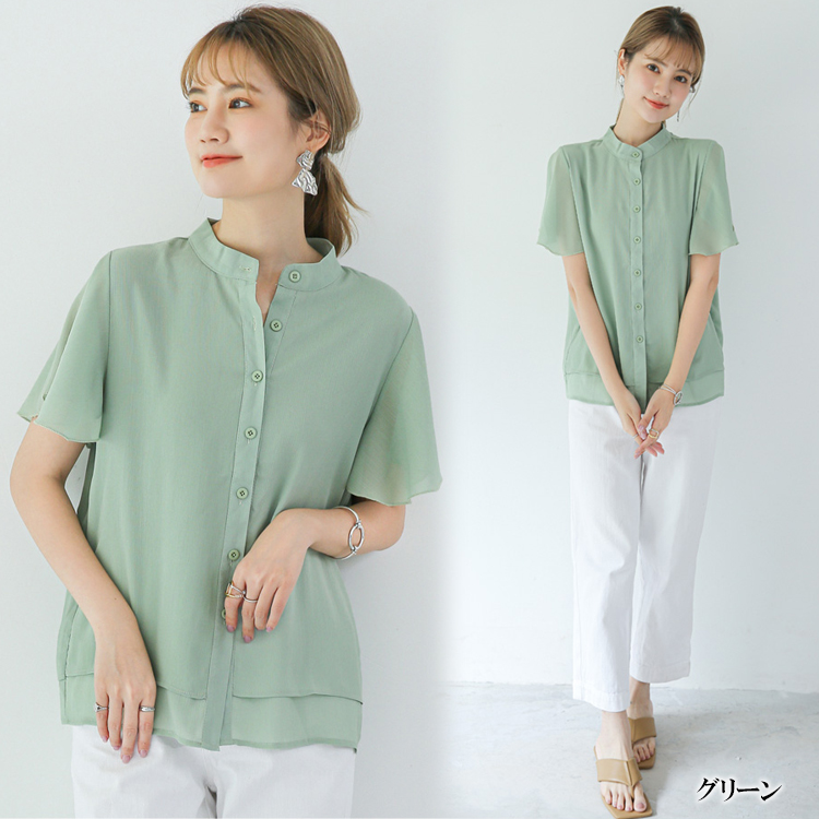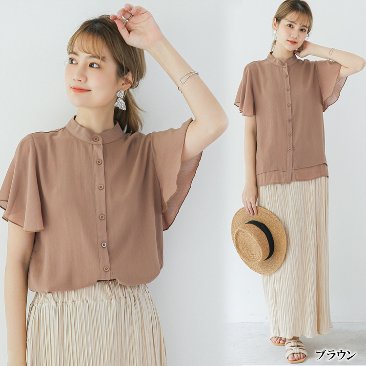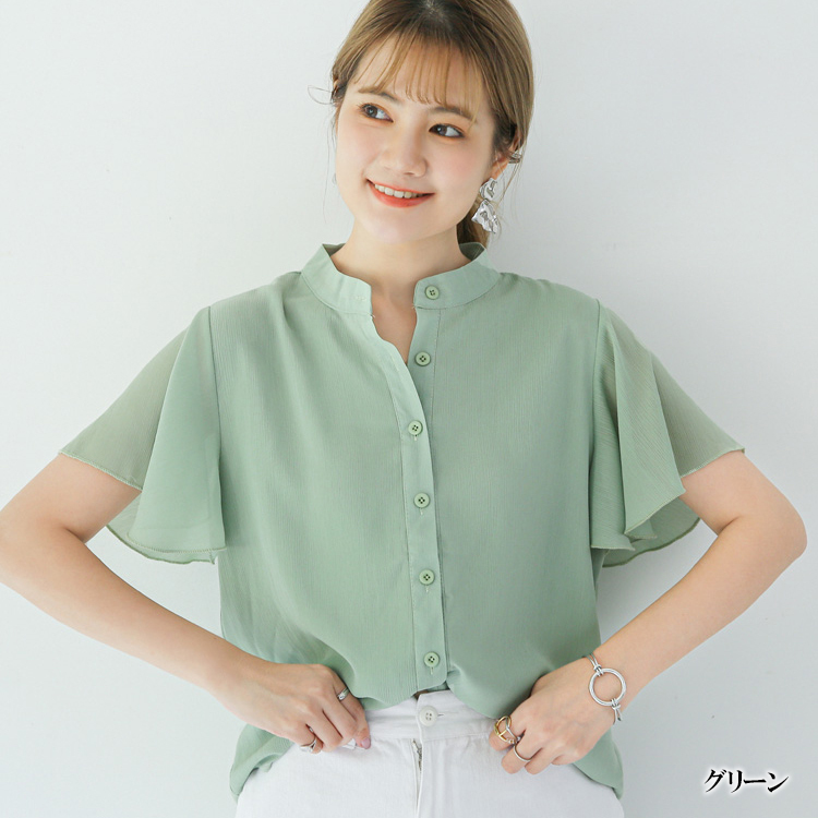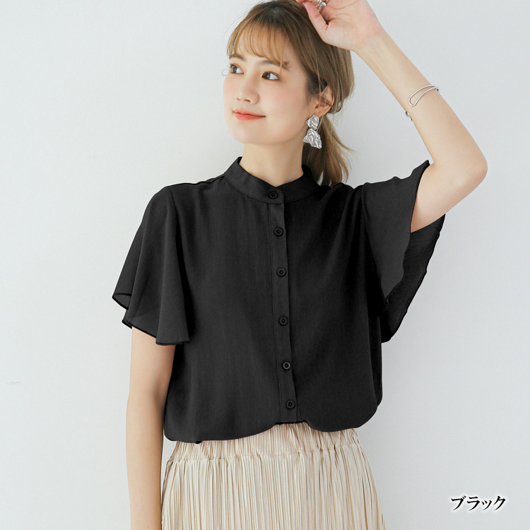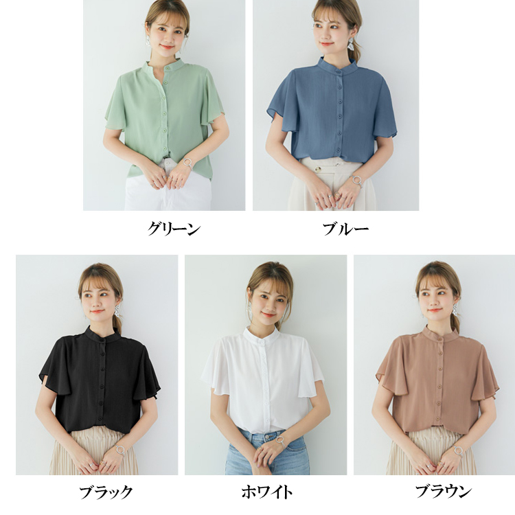 5カラー フレア袖バンドカラーブラウス