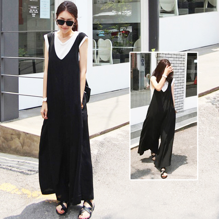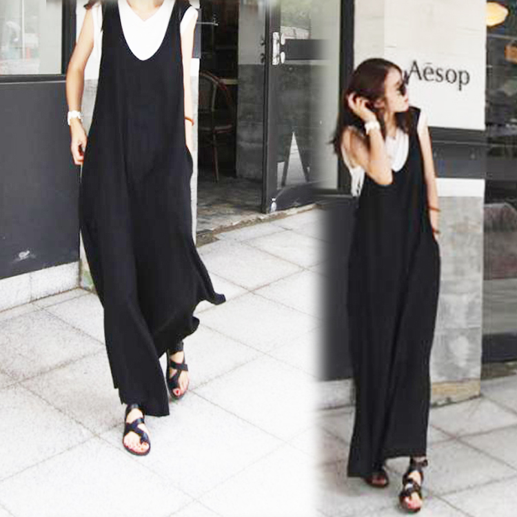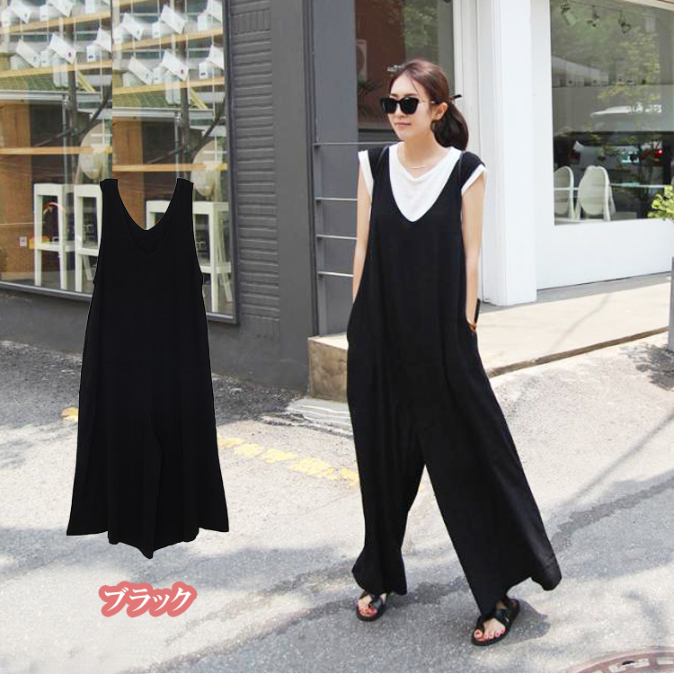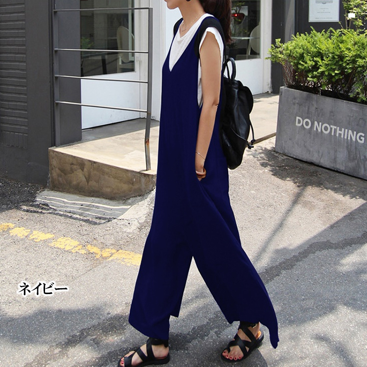 2カラー 5サイズ L XL 2XL 3XL 4XL Vネック大人サロペット ワイドパンツ Vネック オーバーオール ボトムス ロングパンツ ブラック ネイビー 無地 シンプル 体型カバー