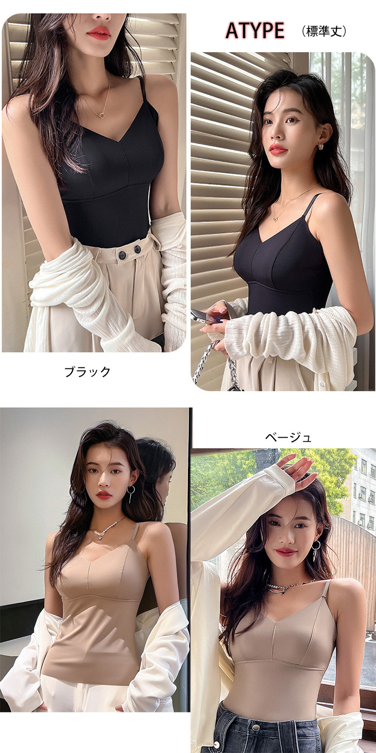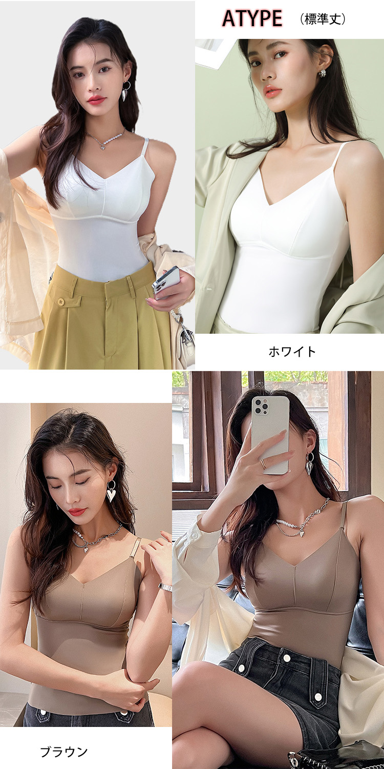 ■選べる丈感-らくちんなパット一体型キャミブラトップ■
