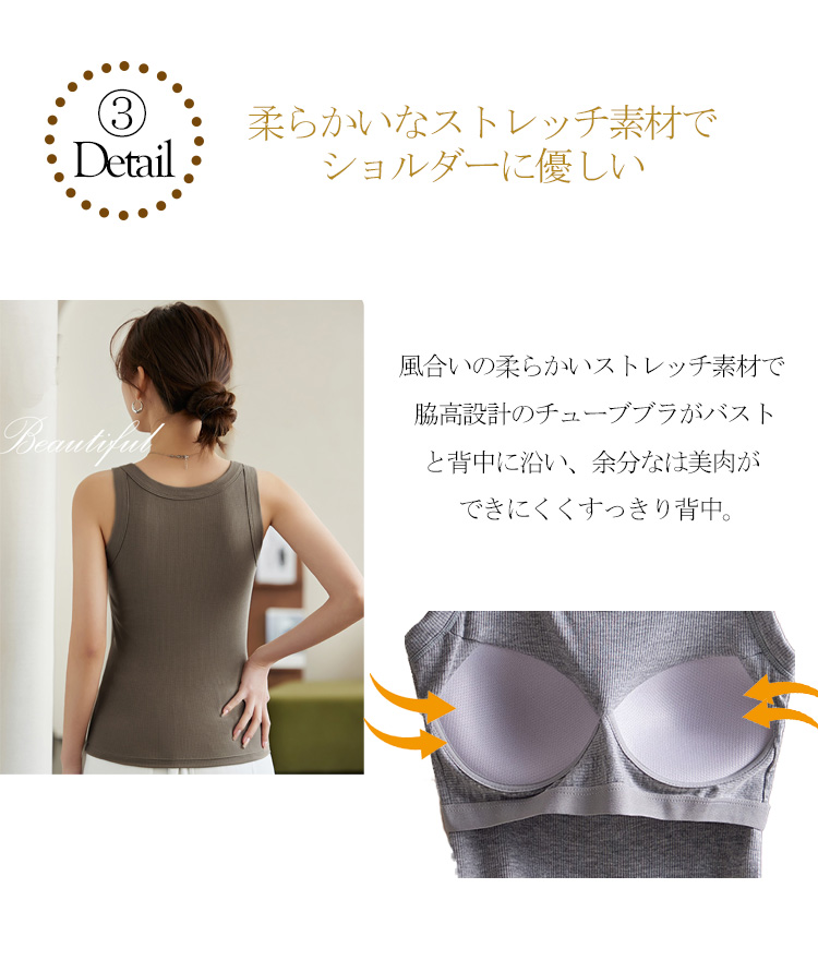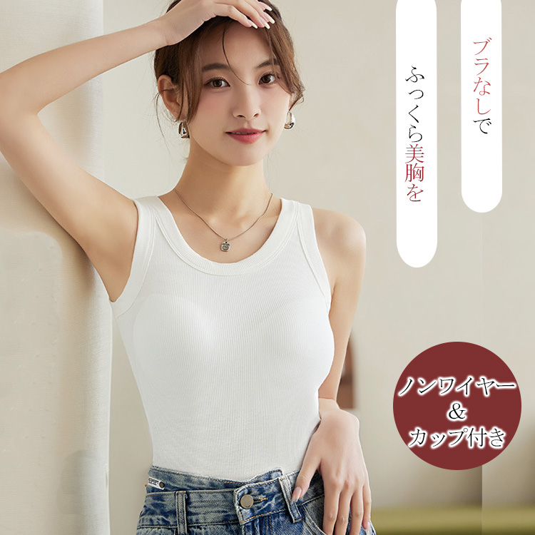 これ1枚で楽ちんに盛れるカップ付きブラタンクトップ。