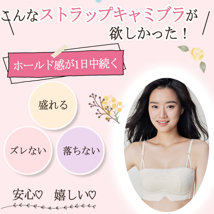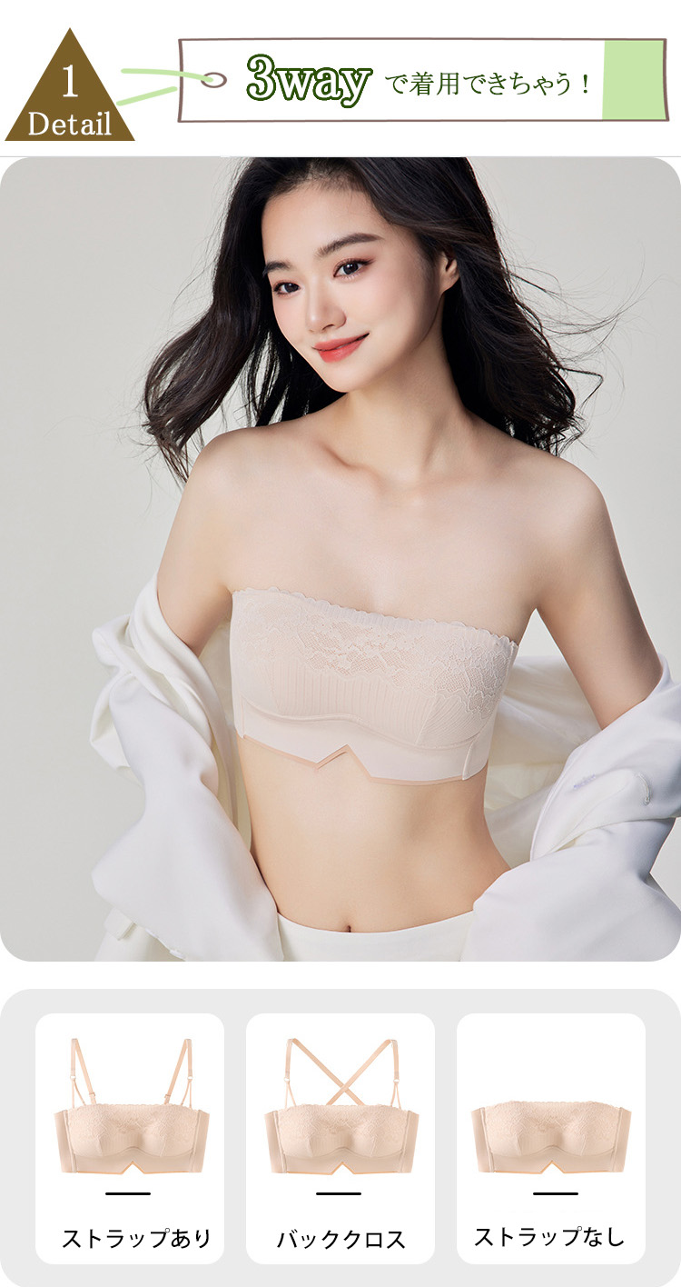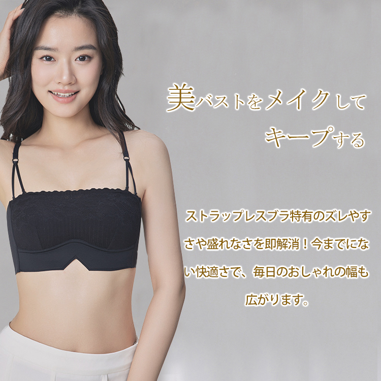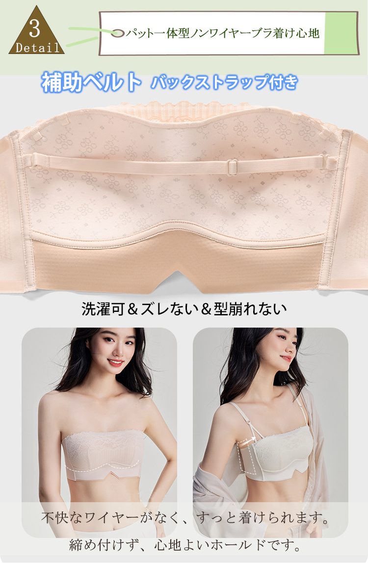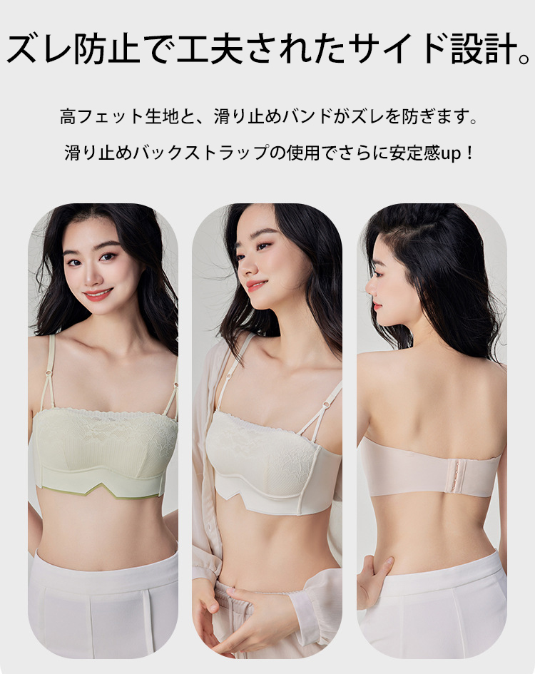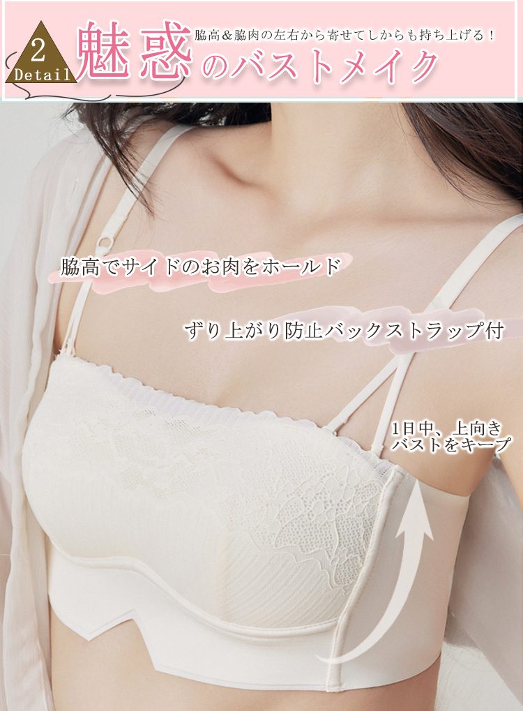 ノンワイヤー ブラトップ カップ付き 刺繍 美胸 ブラキャミ ストラップレス バックストラップ 単品 ノンワイヤー チューブトップ ズレ防止 滑り止め