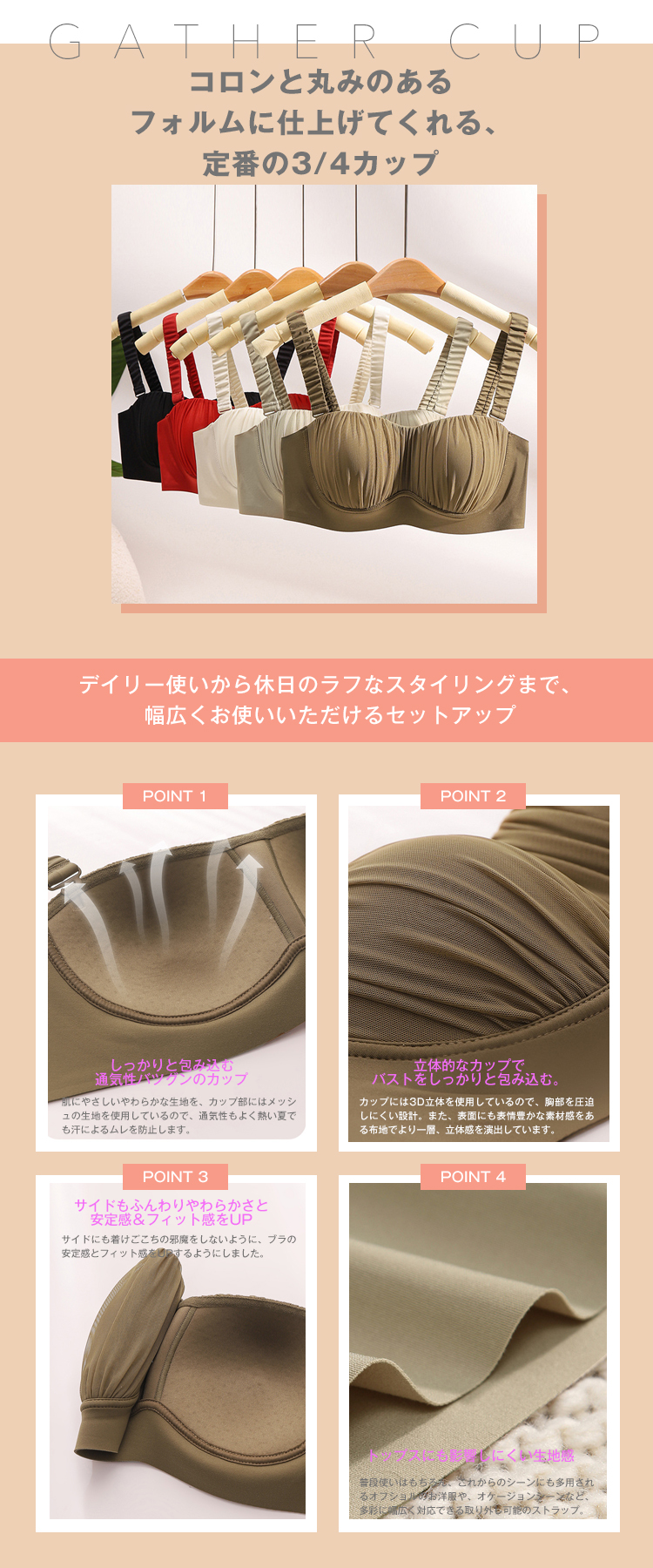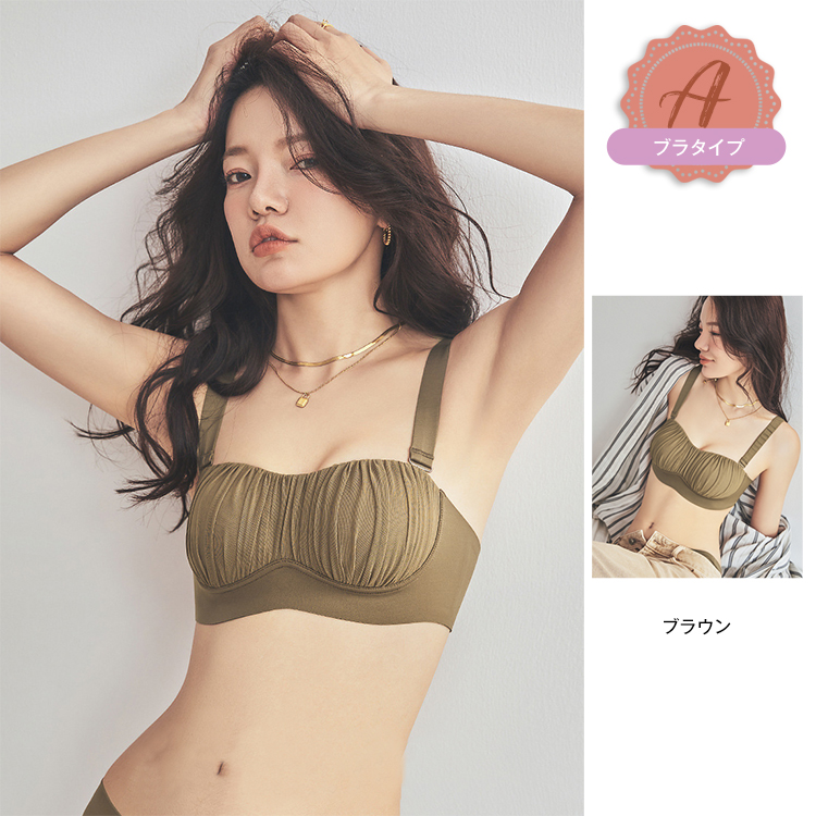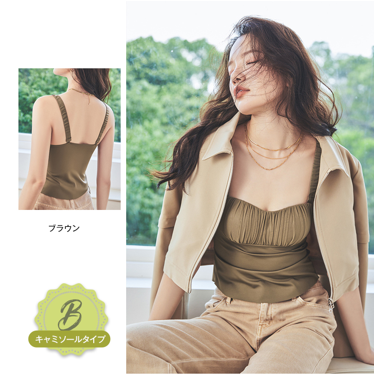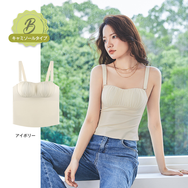 02: A:(ブラ)-アイボリー A:(ブラ)-カーキ A:(ブラ)-ブラウン A:(ブラ)-レッド A:(ブラ)-ブラック B:(キャミソール)-アイボリー B:(キャミソール)-カーキ B:(キャミソール)-ブラウン B:(キャミソール)-レッド B:(キャミソール)-ブラック