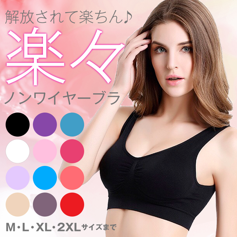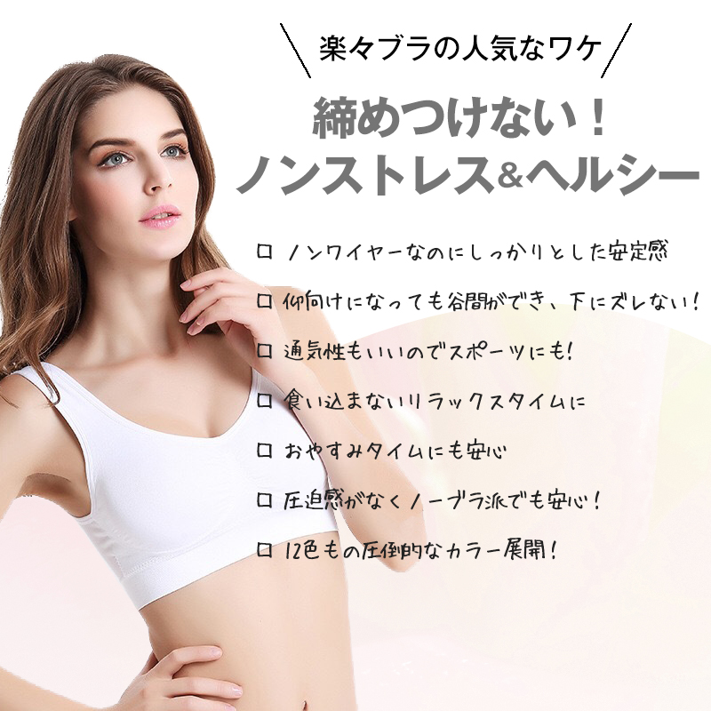 12カラー 4サイズ ノンワイヤーブラ ナイトブラ スポーツブラ ブラトップ 育乳 おやすみブラ 夜用☆