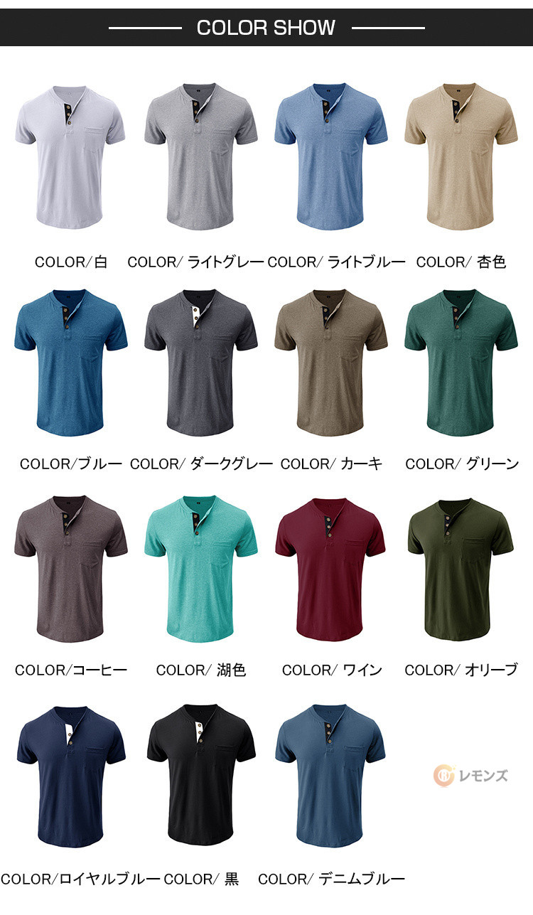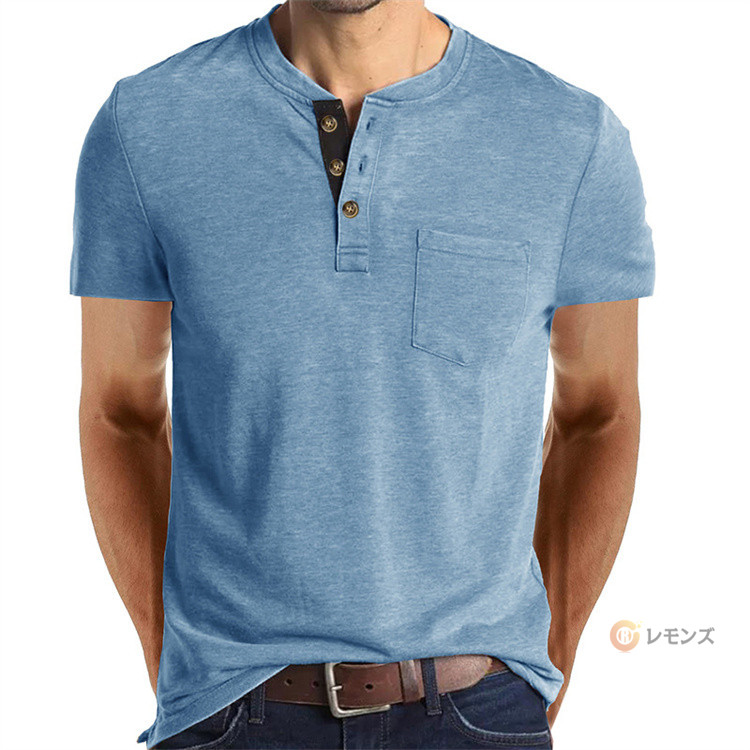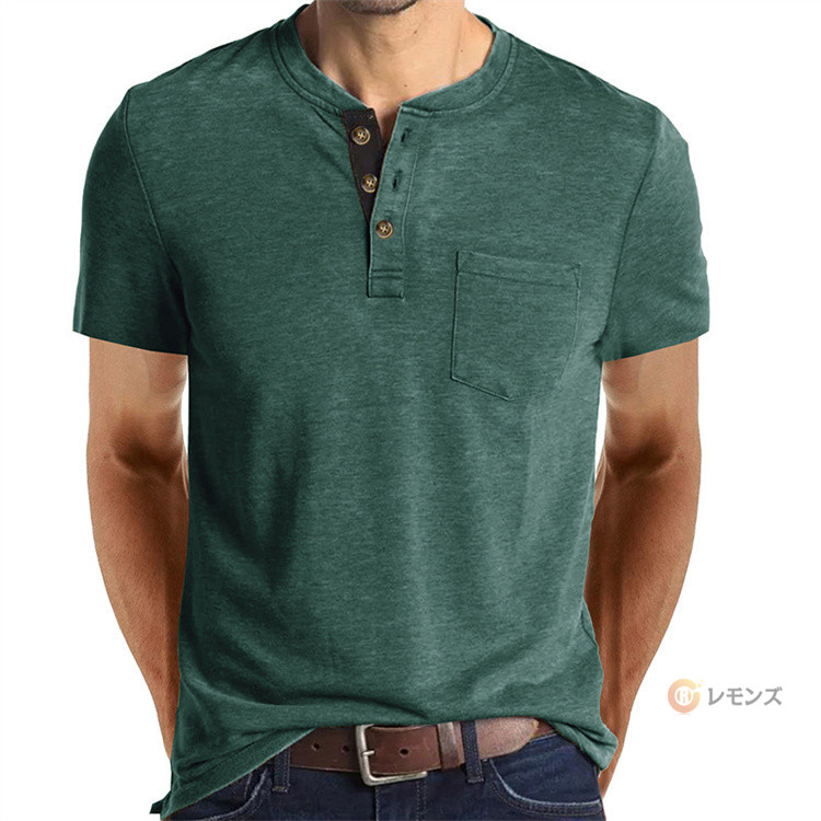 商品名 Tシャツ メンズ ヘンリーネック 半袖 tシャツ 無地 ティーシャツ ヘンリーネックtシャツ ボタン tシャツ カットソー インナーtシャツ 前ボタン Vネック トップス アメカジ ジムウェア 夏服 夏 カジュアル おしゃれ