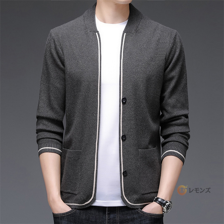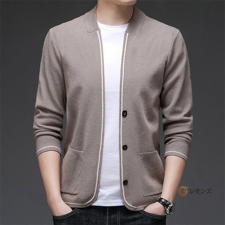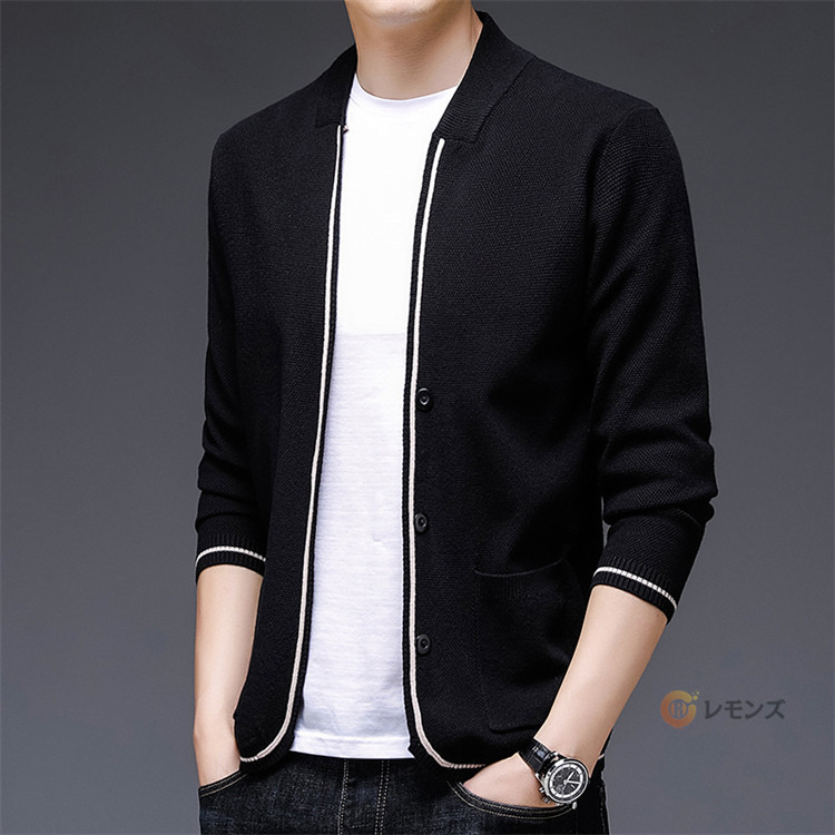 薄手 vネック ニットカーディガン カーデ 無地 長袖 おしゃれ リブ編み ニットジャケットメンズファッション トップス カーディガン