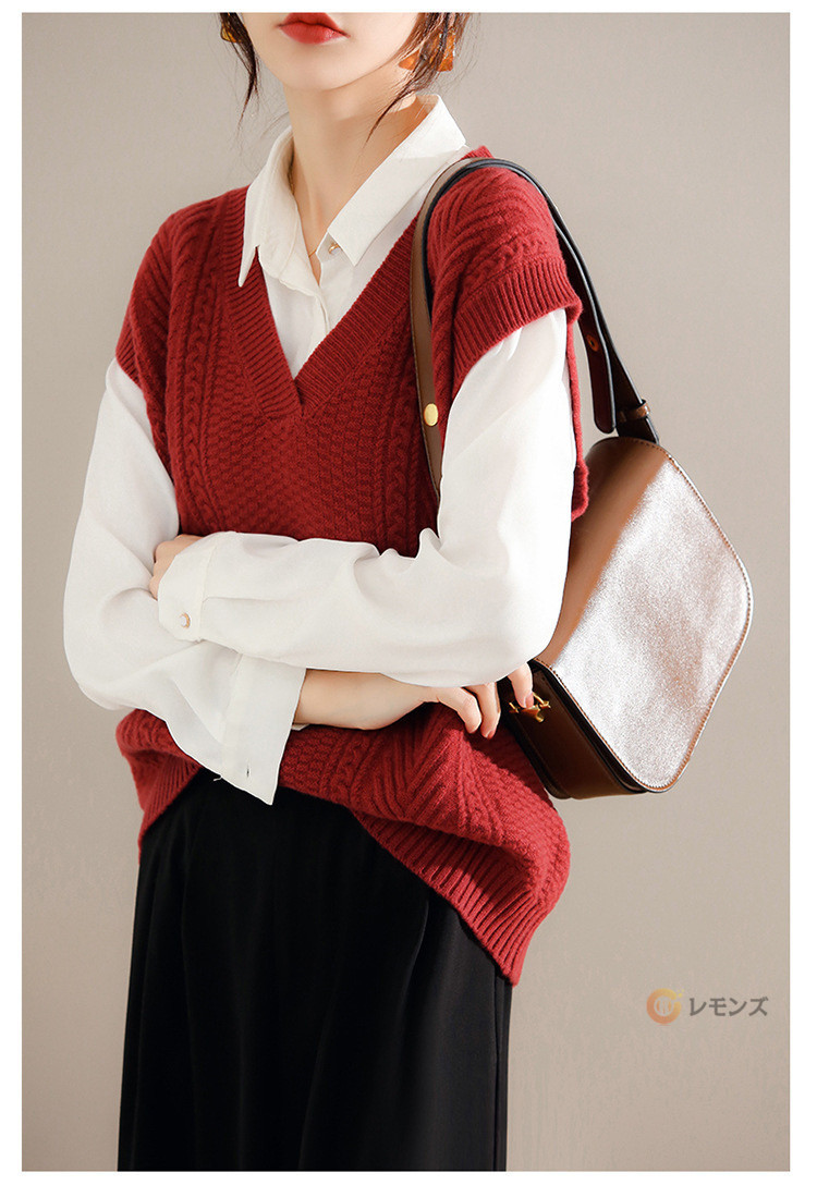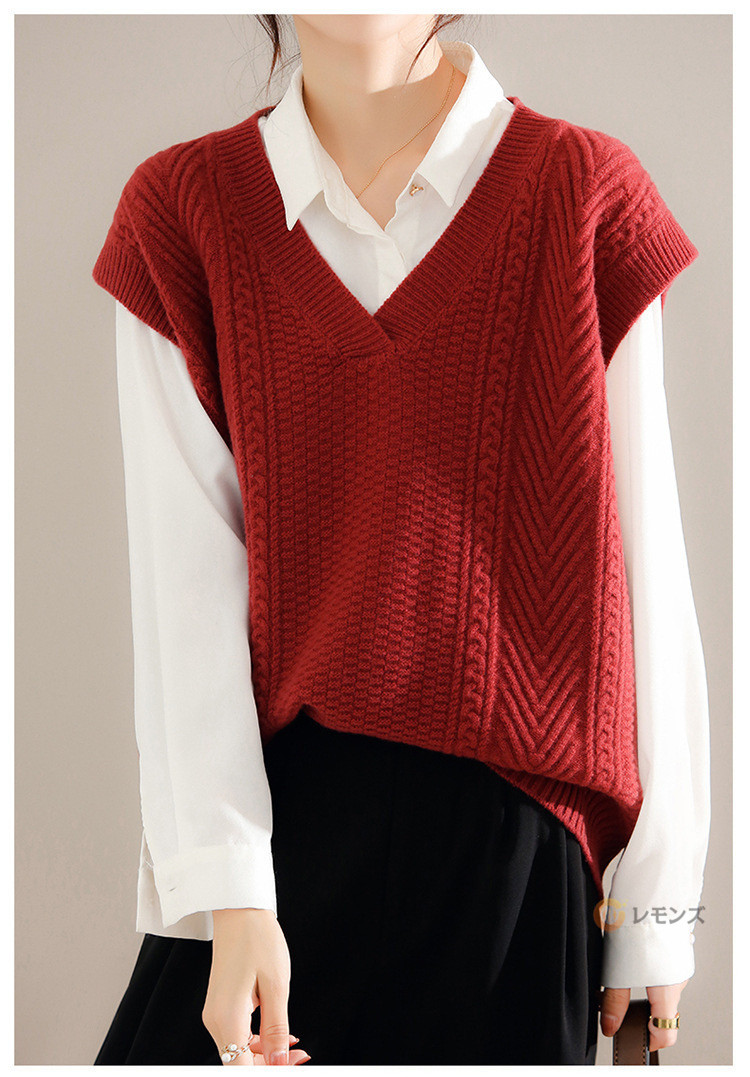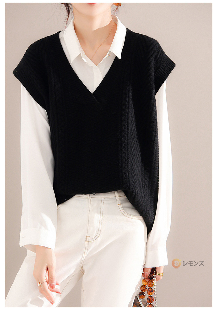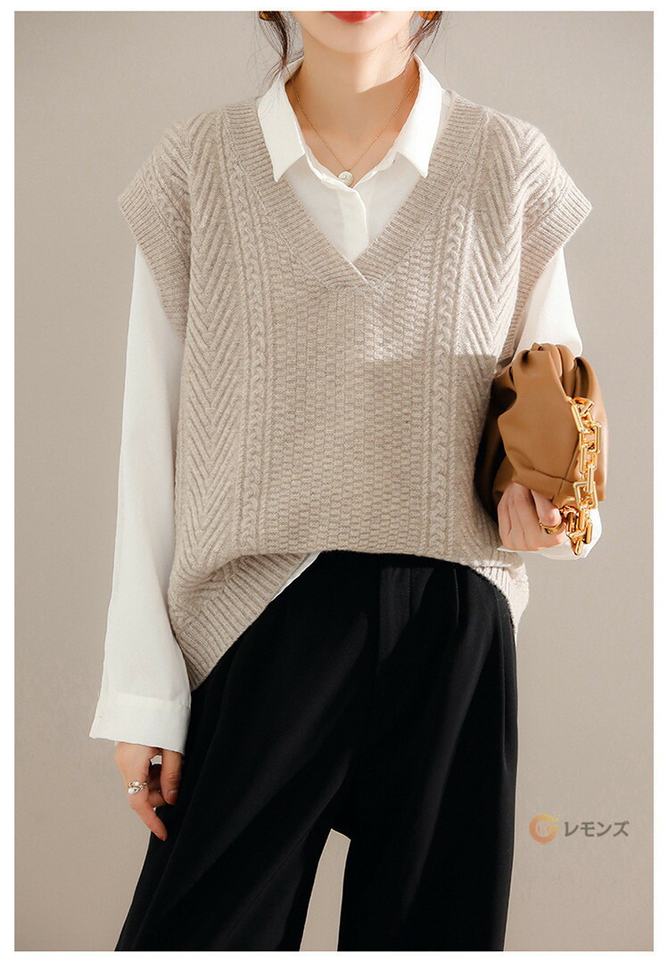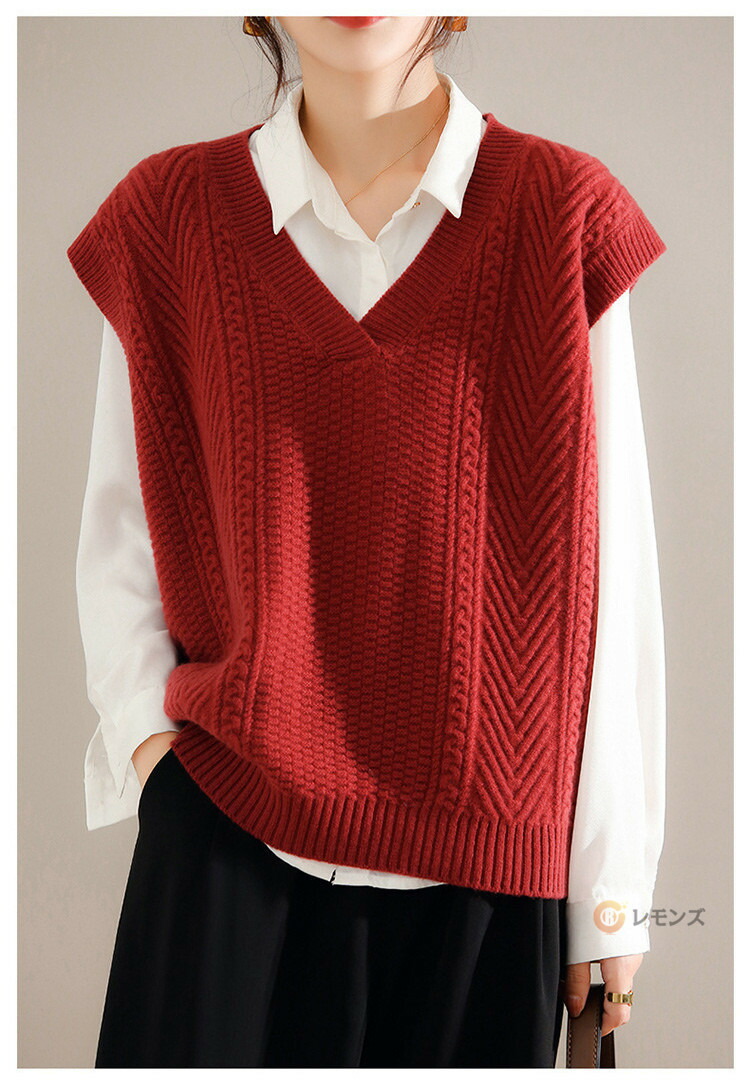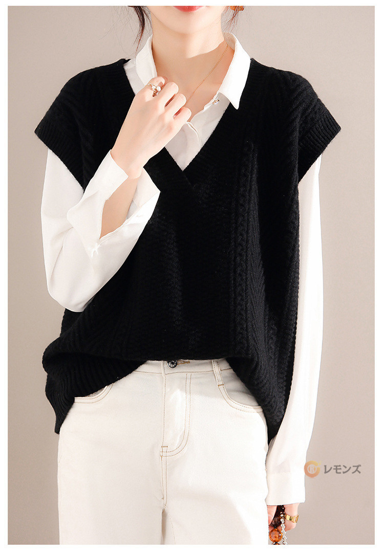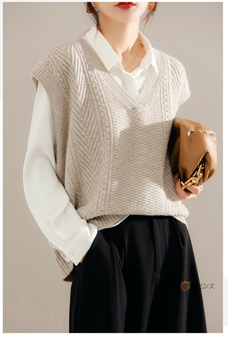 商品名 ケーブルニット ベスト レディース ニットベスト vネック 無地 トップス ケーブル編み ノースリーブ 重ね着 ニット セーター レイヤード ゆったり 大人 カジュアル 春 秋 冬 きれいめ 着こなし 柔らかい 暖かい おしゃれ レディースファッション トップス