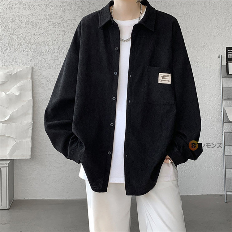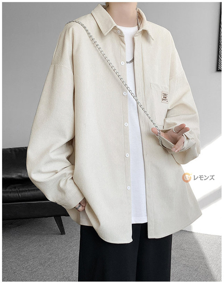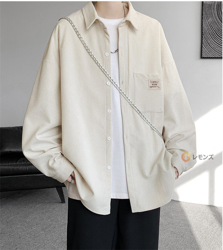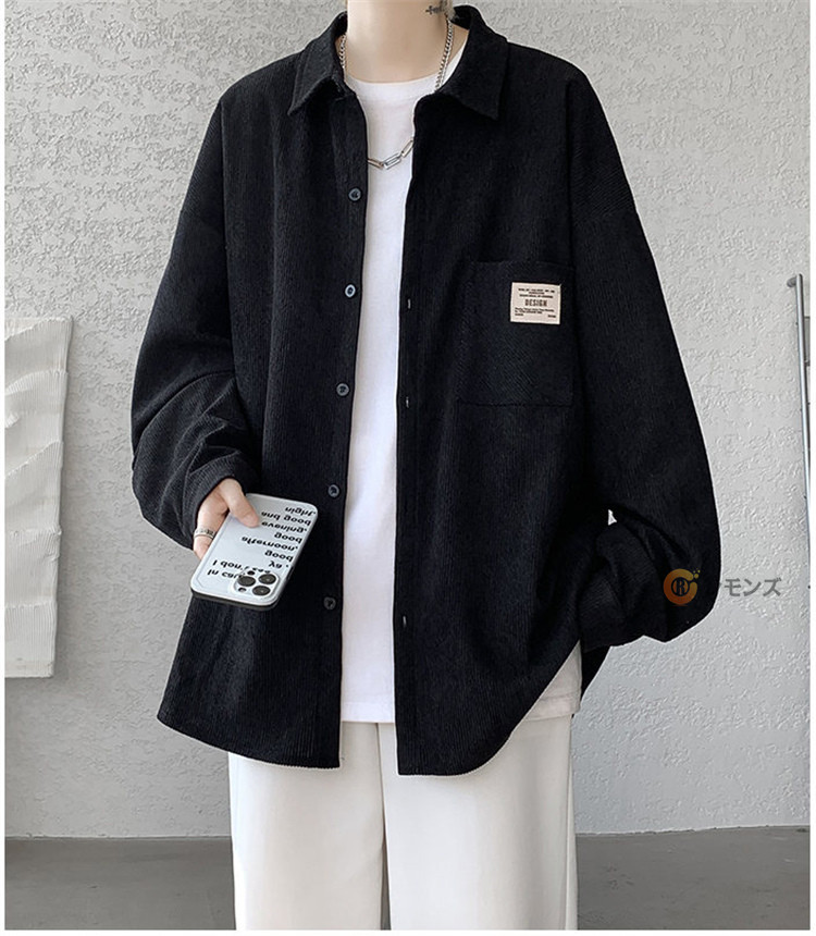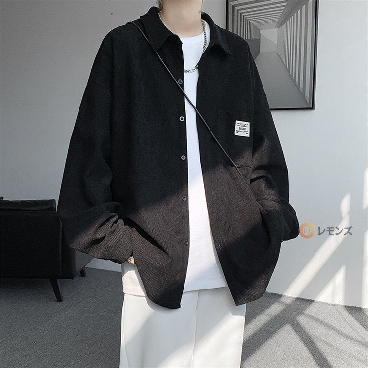 商品名 コーデュロイ シャツ メンズ カジュアルシャツ 秋服 長袖シャツ ビッグシルエット シャツ オーバーサイズ 胸ポケット シャツジャケット メンズシャツ ゆったり 羽織り 秋物 春服 ブラウス 無地 コールテンシャツ ファッション