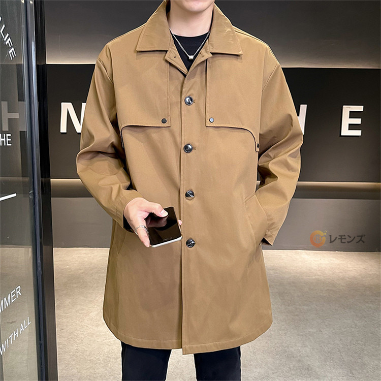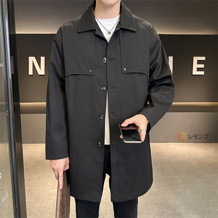 商品名 ステンカラーコート メンズ コート 秋服 スプリングコート アウター ロングコート ジャケット シンプル ビジネスコート メンズコート メンズアウター ミドル丈 膝上 紳士服 通勤 仕事 冬 秋 無地 カジュアル 男性 大きいサイズ 春秋冬